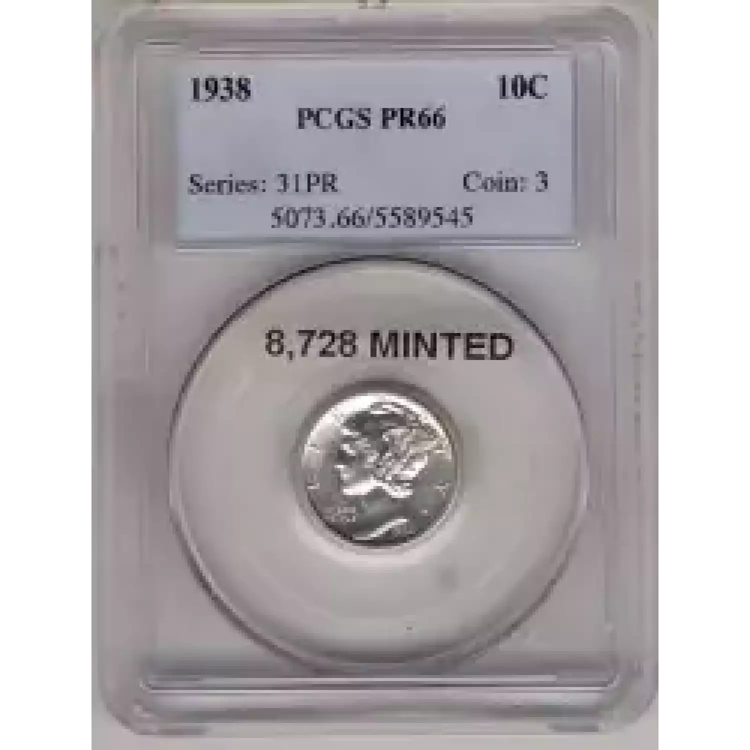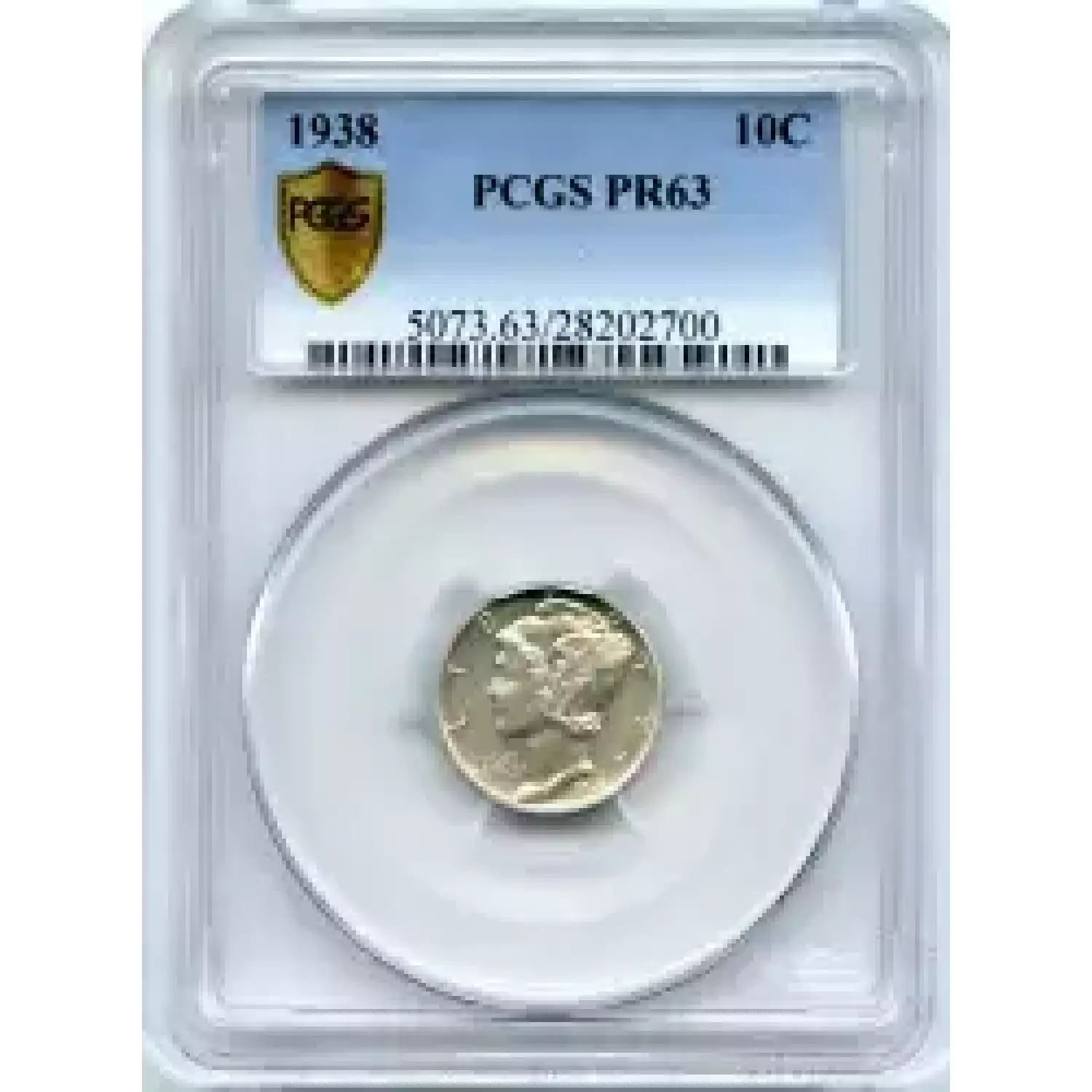 507177 | 1938-PR-63 Dimes Winged Liberty Head or Mercury PCGS PR-63 | PCGS | PR-63 | Sold: 07/07/2014 | $190 |