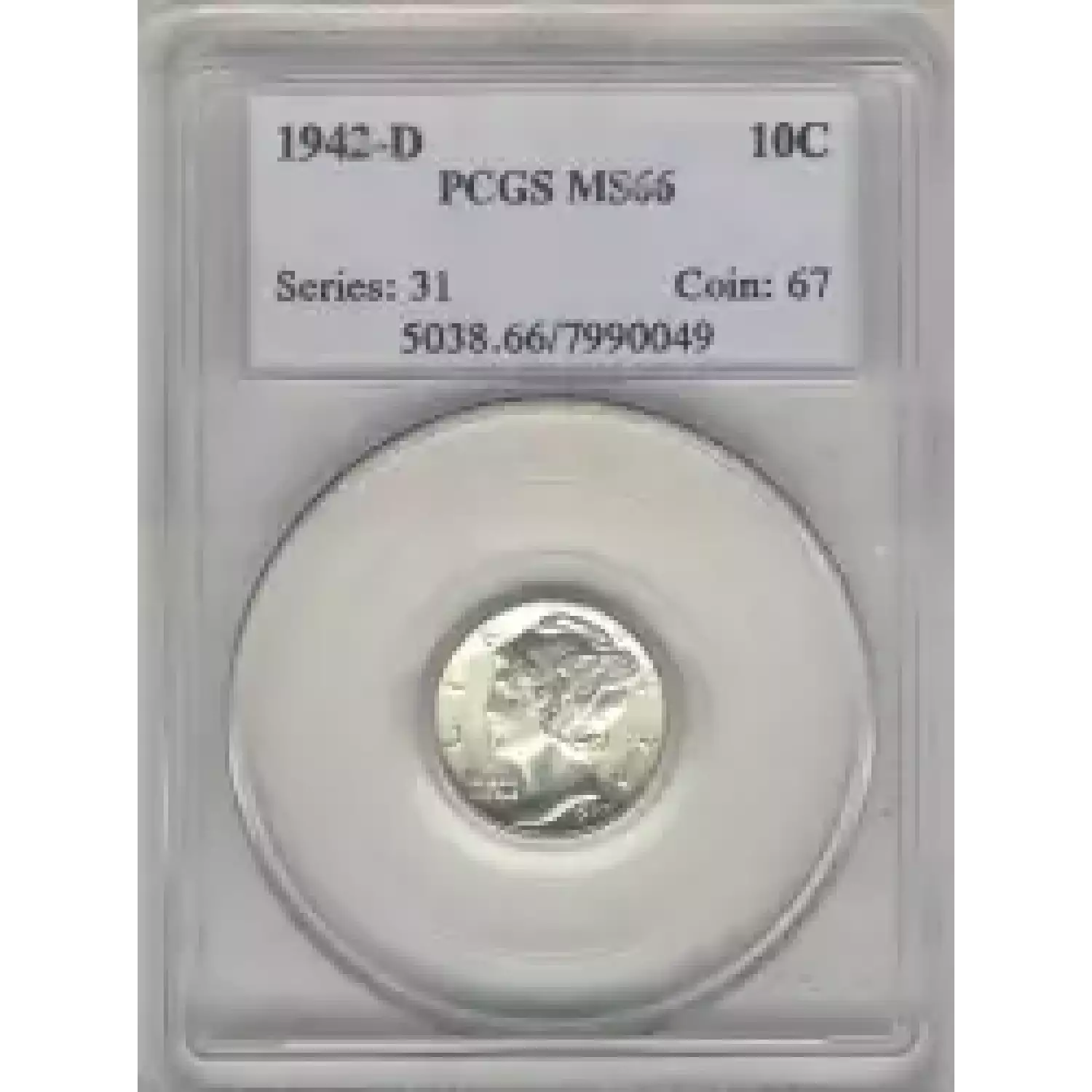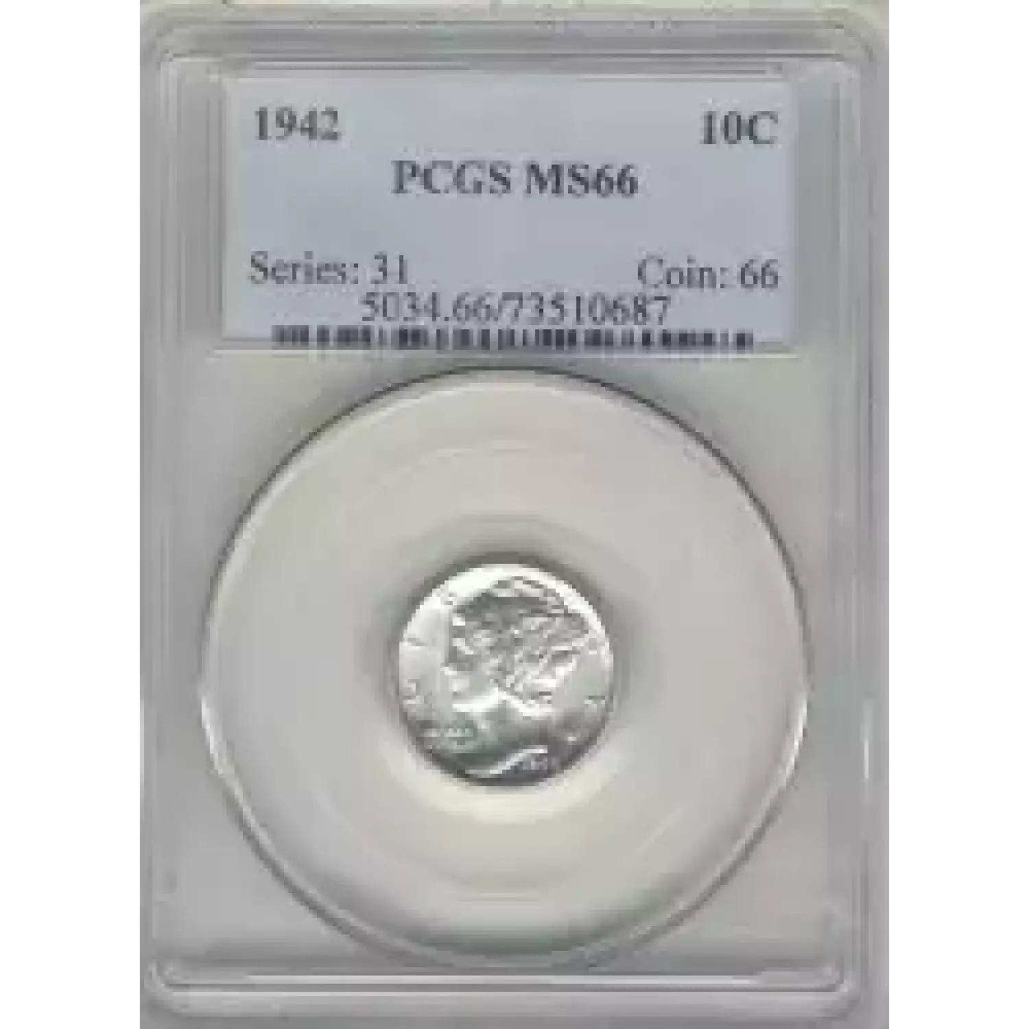 506214 | 1942-MS-66 Dimes Winged Liberty Head or Mercury PCGS MS-66 | PCGS | MS-66 | Sold: 23/07/2012 | $25.67 |