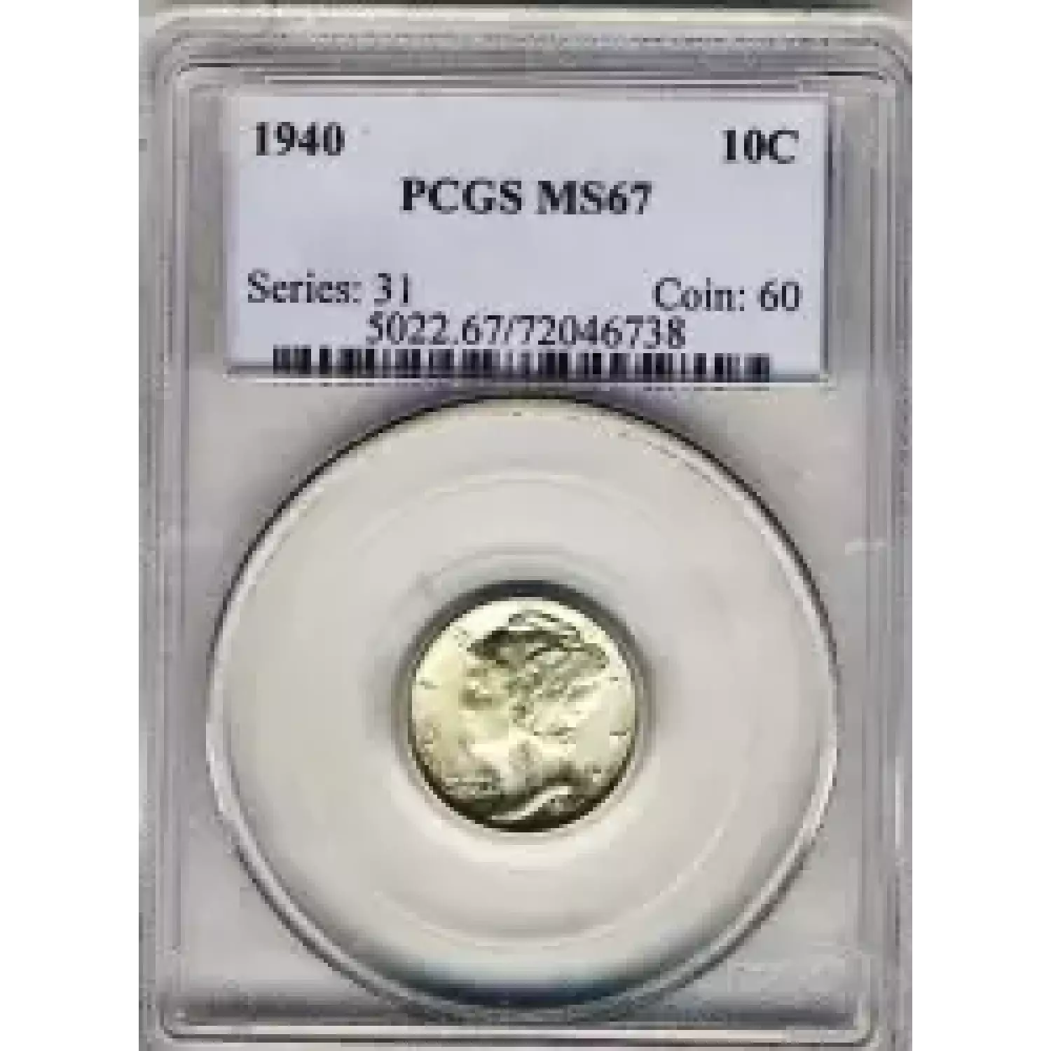 506195 | 1940-MS-67 Dimes Winged Liberty Head or Mercury PCGS MS-67 | PCGS | MS-67 | Sold: 23/07/2012 | $39 |