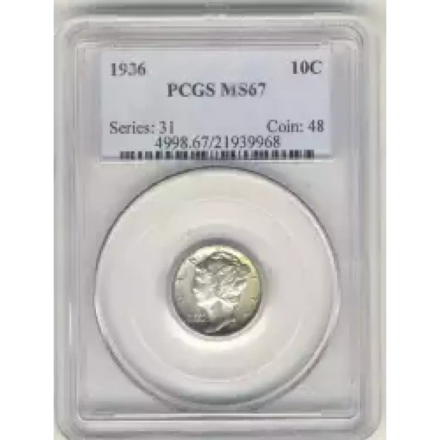 506201 | 1936-MS-67 Dimes Winged Liberty Head or Mercury PCGS MS-67 | PCGS | MS-67 | Sold: 23/07/2012 | $45.99 |