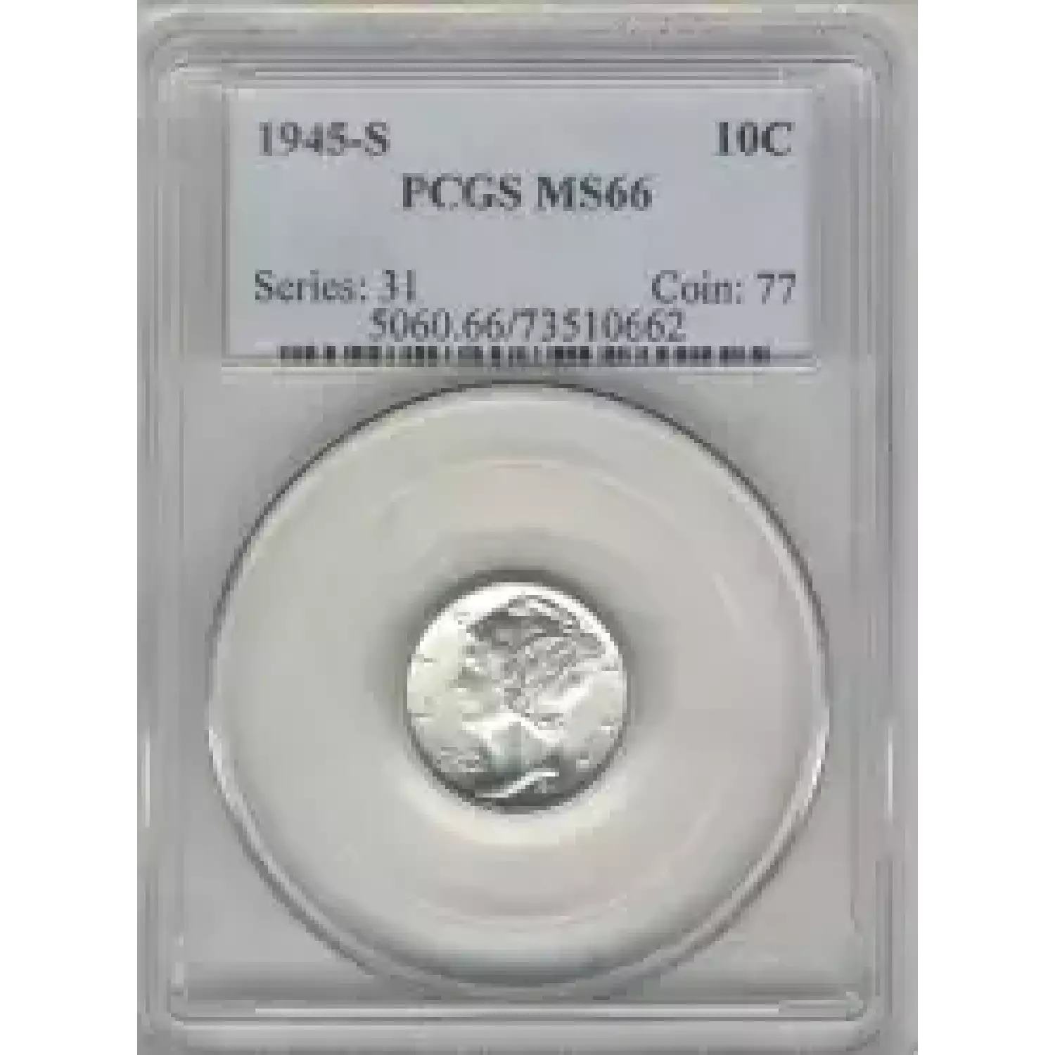 506206 | 1945-MS-66 Dimes Winged Liberty Head or Mercury PCGS MS-66 | PCGS | MS-66 | Sold: 21/07/2012 | $20.55 |