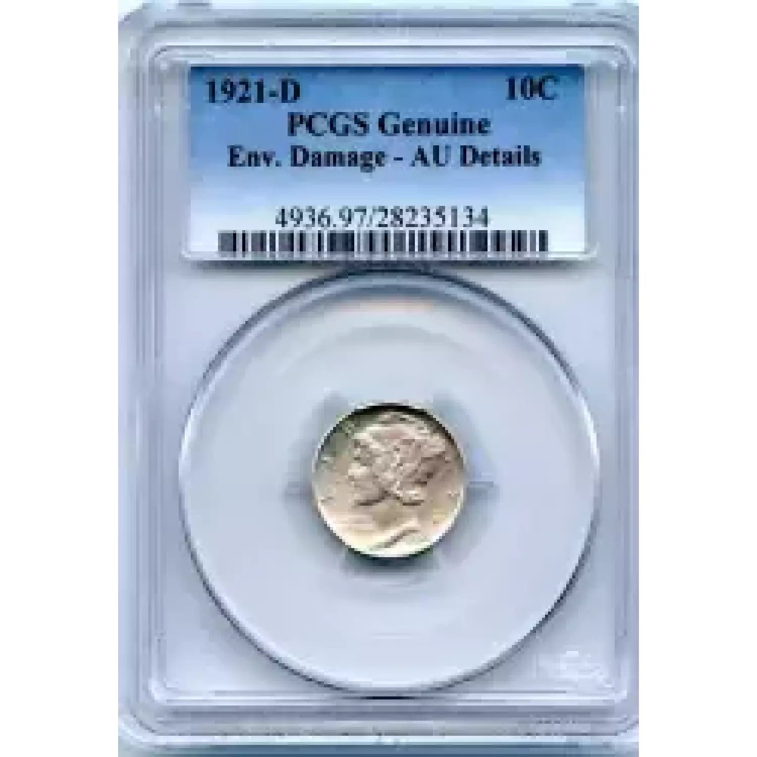 507078 | 1921-Genuine (97 - Environmental Damage) Dimes Winged Liberty Head or Mercury PCGS Genuine (97 - Environmental Damage) | PCGS | Genuine (97 - Environmental Damage) | Sold: 16/11/2013 | $500 |