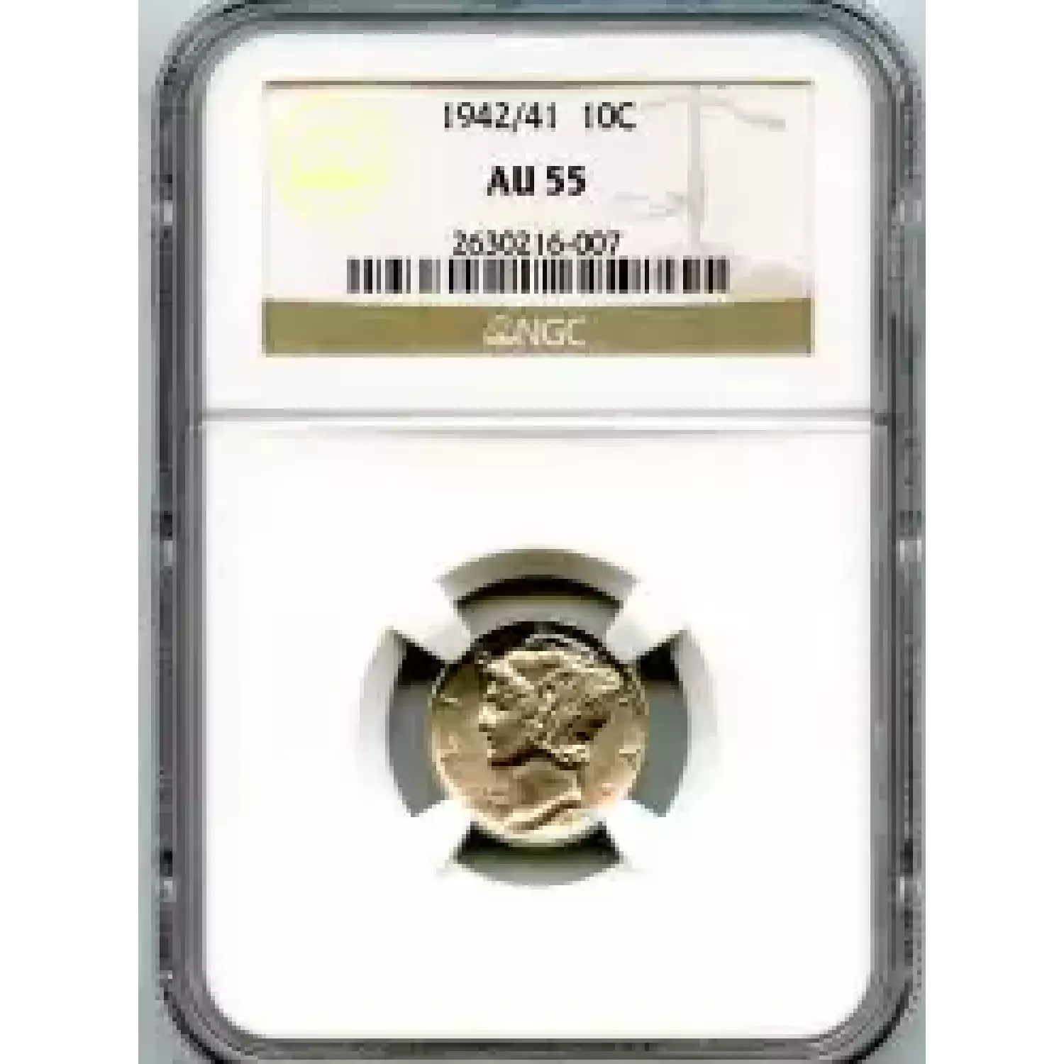 507669 | 1942/1-AU-55 Dimes Winged Liberty Head or Mercury NGC AU-55 | NGC | AU-55 | Sold: 02/07/2014 | $1,300 |
