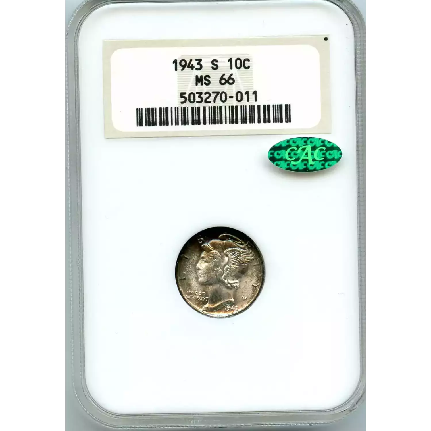 534629 | 1943-S Dimes Winged Liberty Head or Mercury PCGS MS-66 FB | PCGS | MS-66 | Sold: 12/06/2025 | $105 |