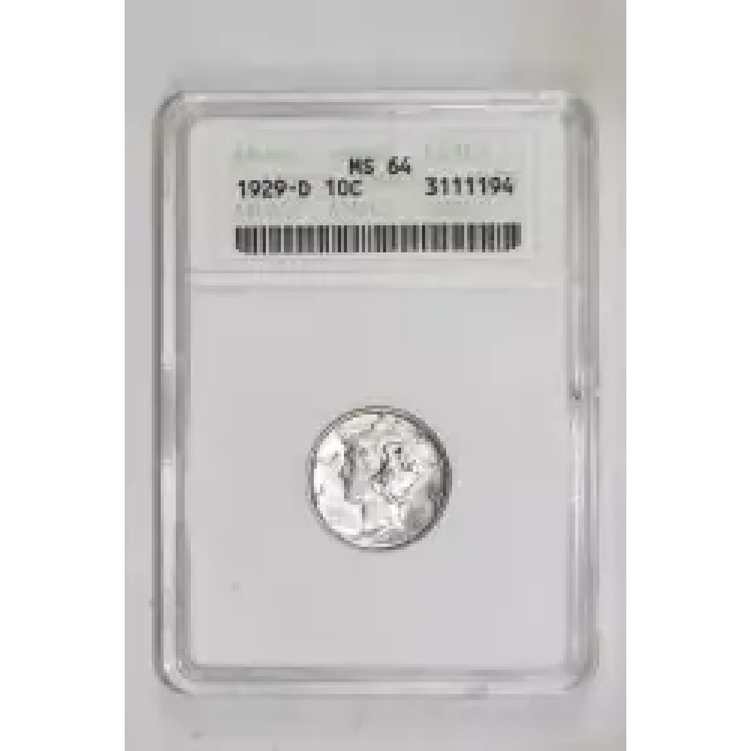 519588 | 1929-D Dimes Winged Liberty Head or Mercury ANACS MS-64 | ANACS | MS-64 | Sold: 21/09/2023 | $1,000 |