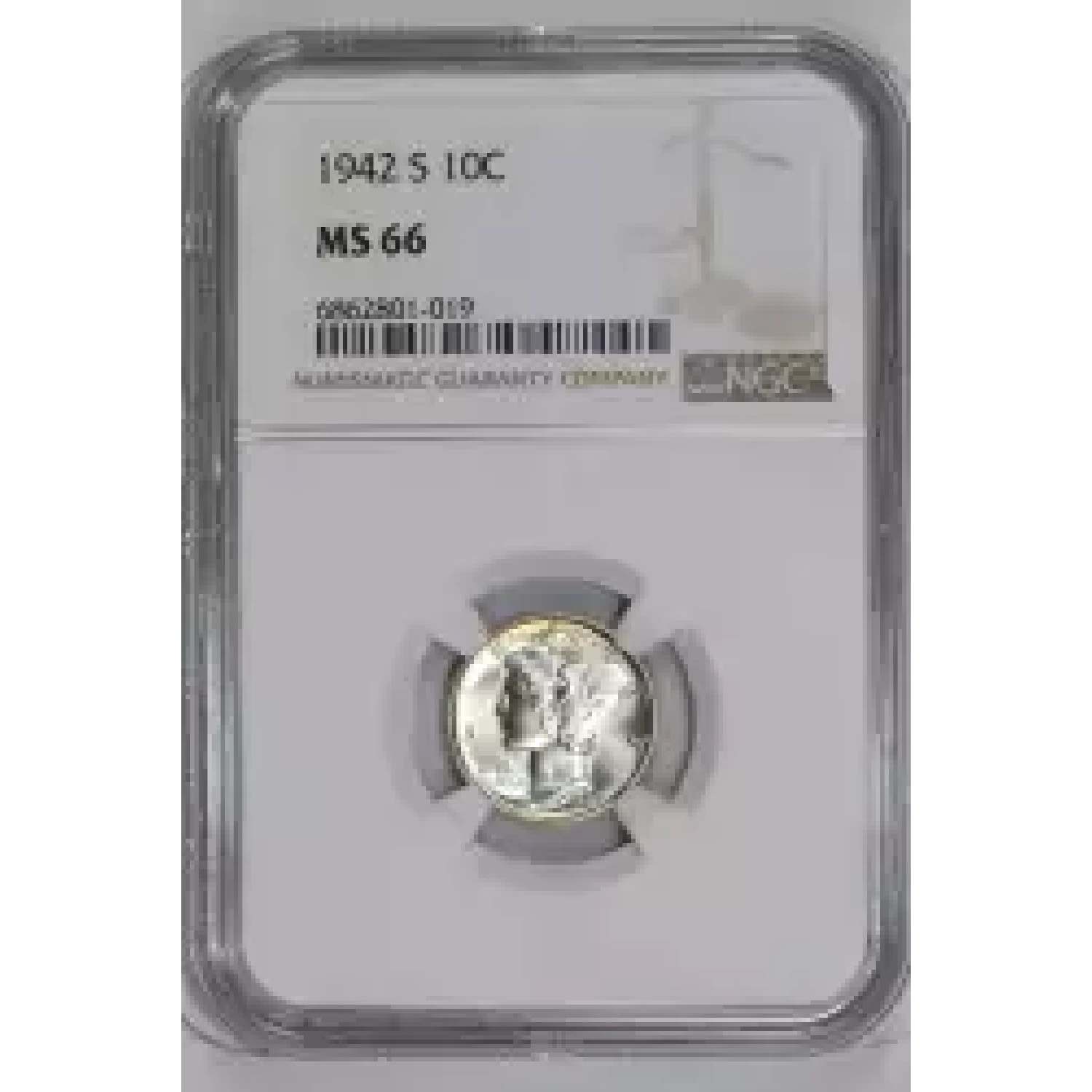 521054 | 1942-S Dimes Winged Liberty Head or Mercury NGC MS-66 | NGC | MS-66 | Sold: 25/03/2024 | $60 |