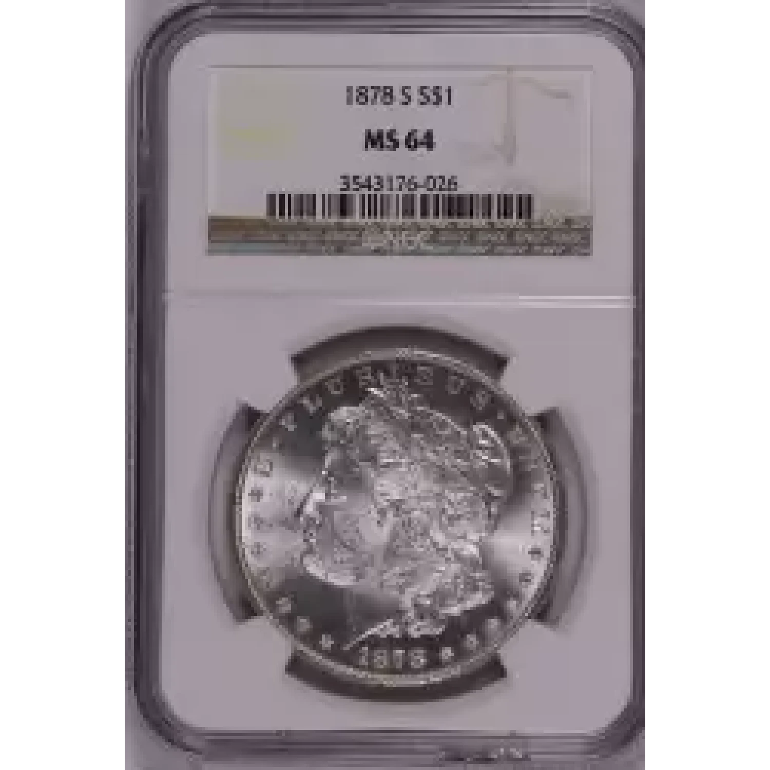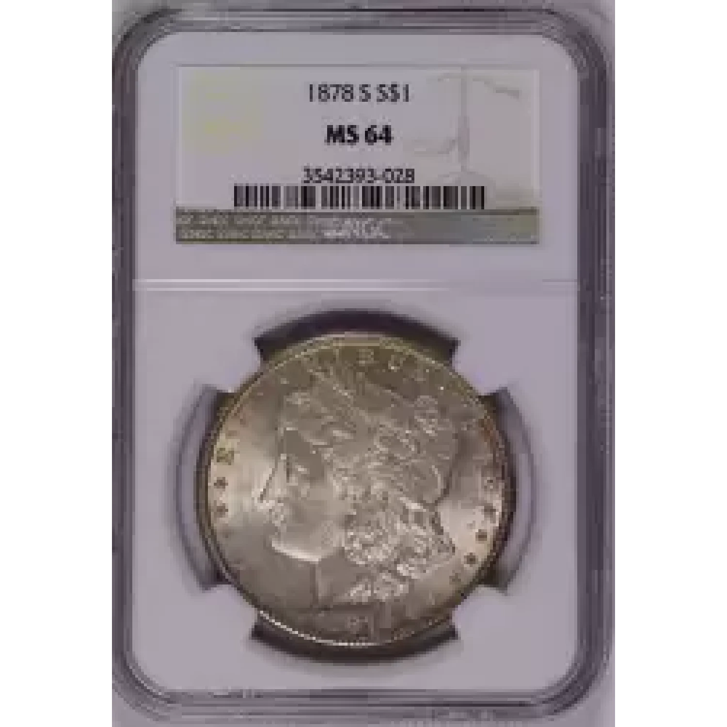 500610 | 1878-S Morgan Silver Dollar NGC MS-64 | NGC | MS-64 | Sold: 08/08/2022 | $225 |