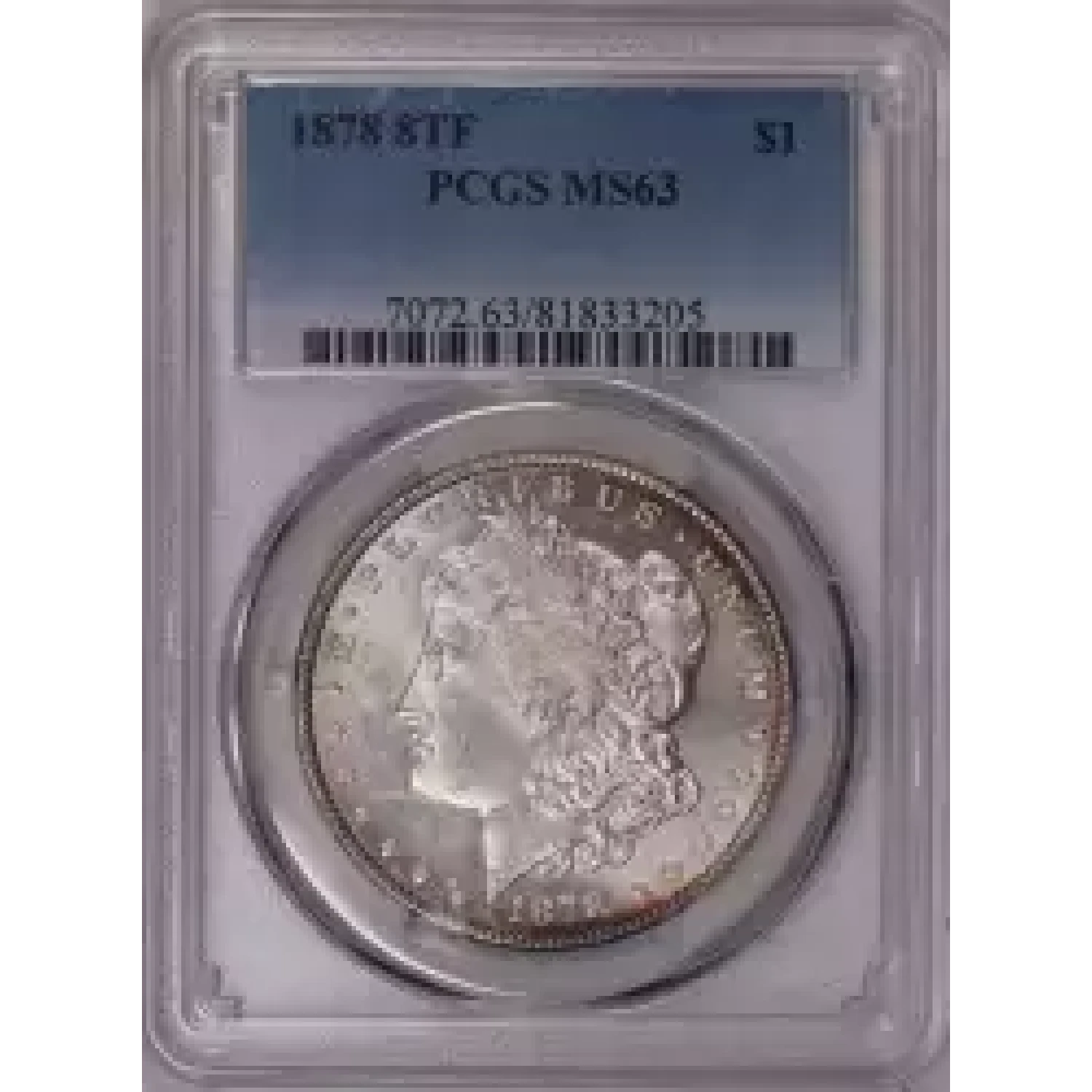 500369 | 1878 Morgan Silver Dollar PCGS MS-63 8TF | PCGS | MS-63 | Sold: 06/04/2022 | $500 |