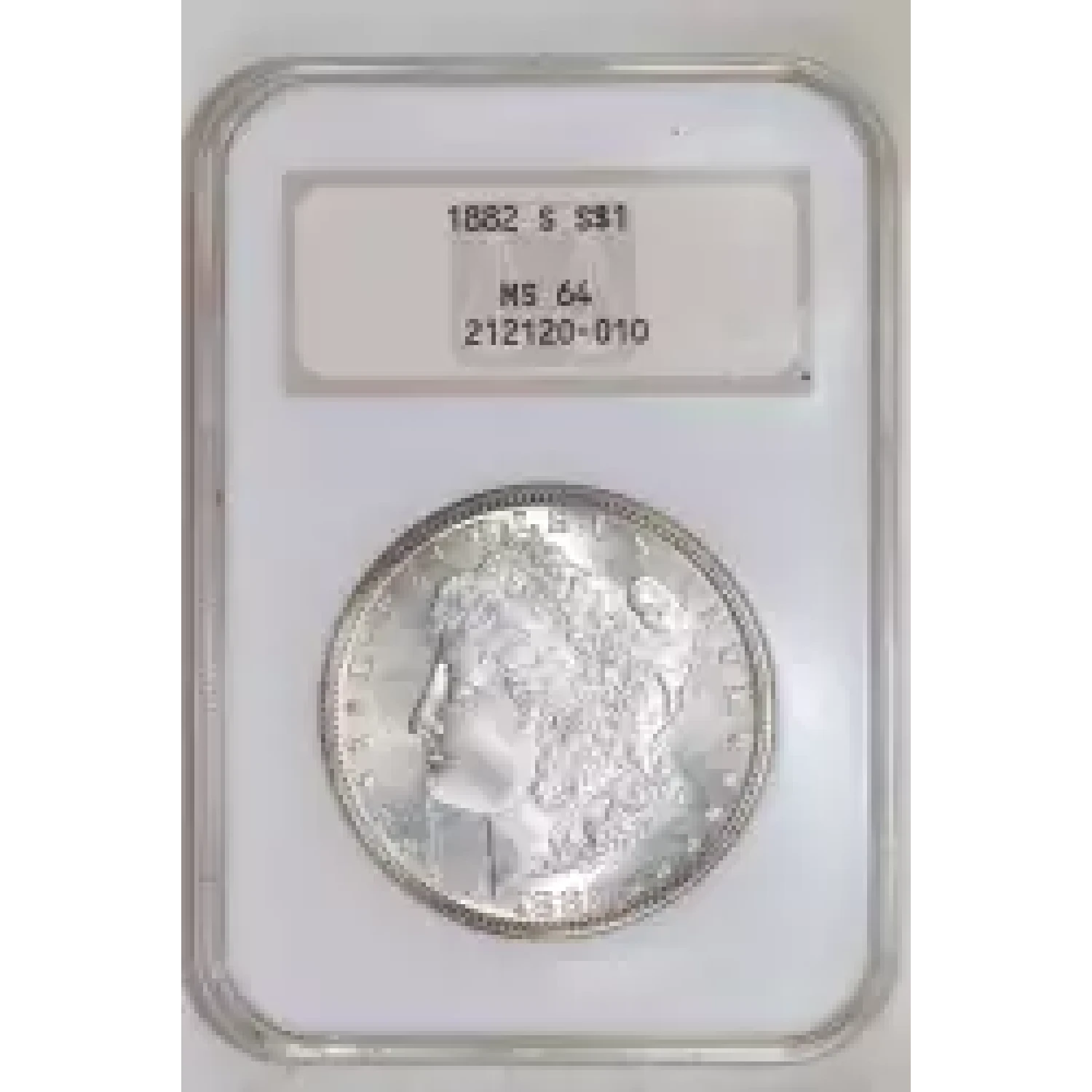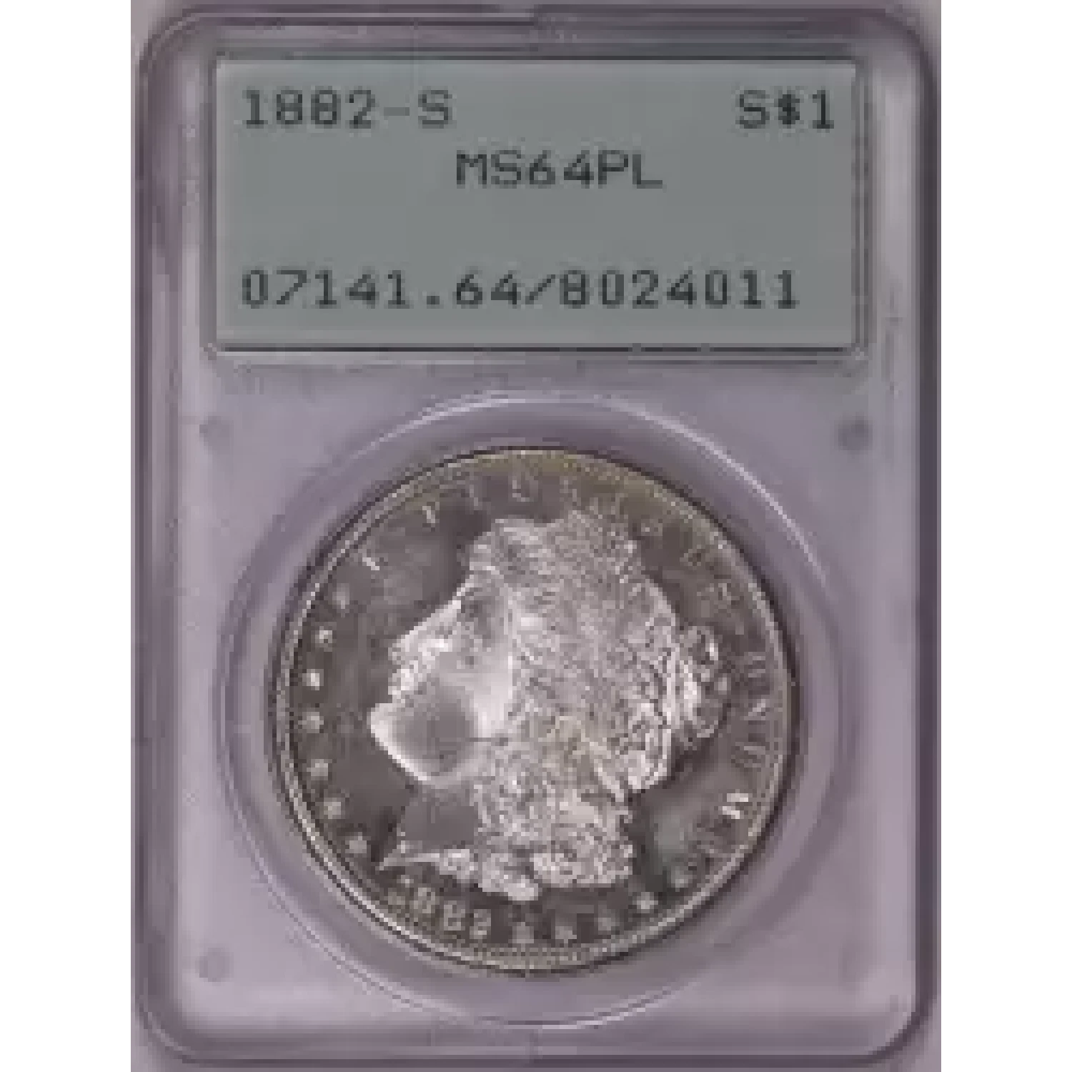 500579 | 1882-S Morgan Silver Dollar PCGS MS-64 PL | PCGS | MS-64 | Sold: 09/03/2022 | $300 |