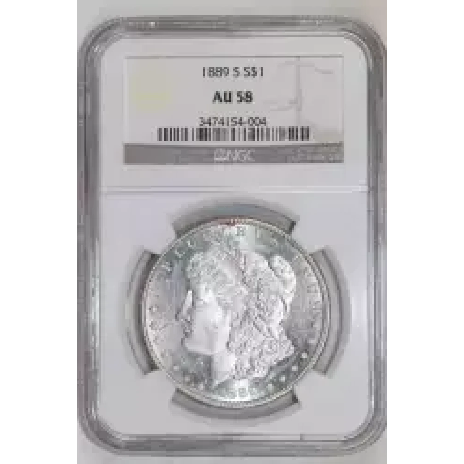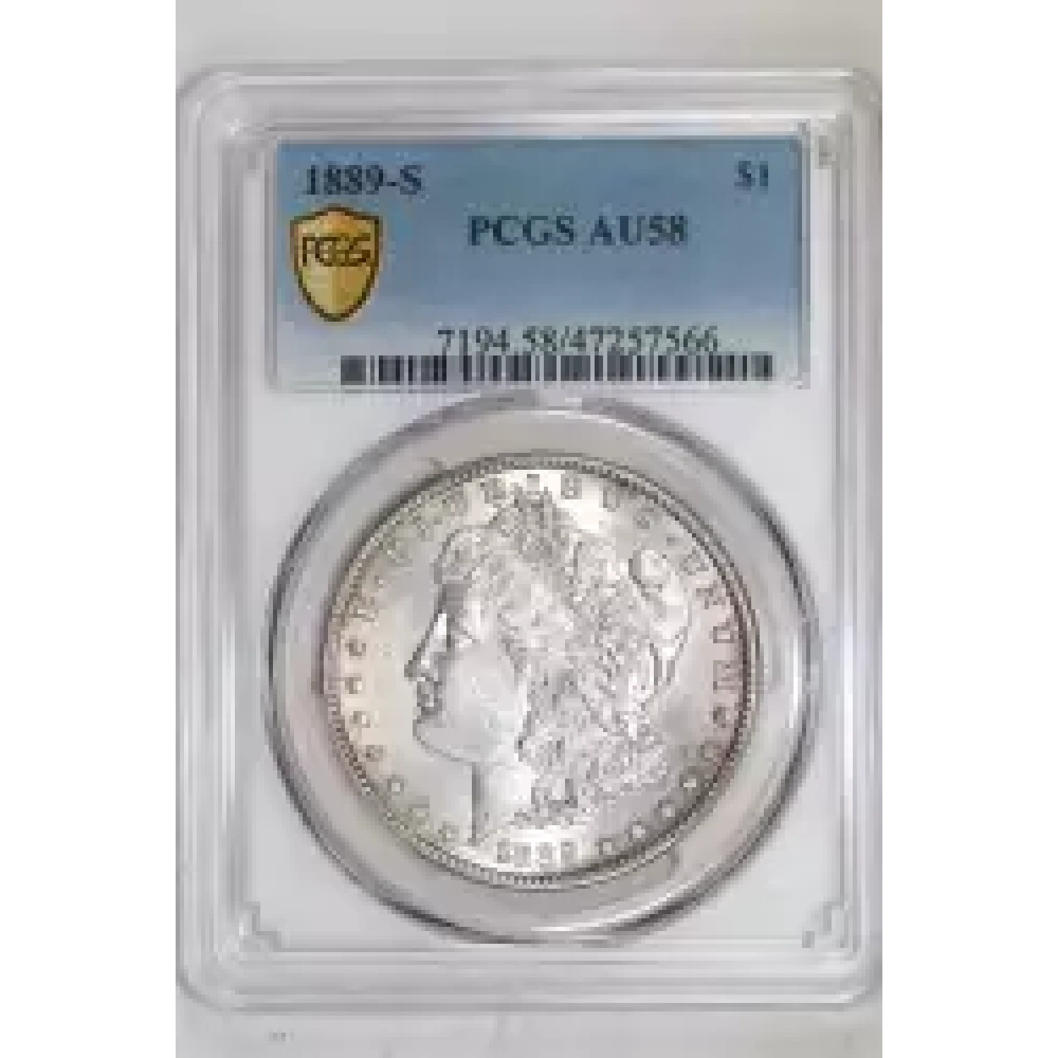 520047 | 1889-S Morgan Silver Dollar PCGS AU-58 | PCGS | AU-58 | Sold: 05/10/2023 | $255 |