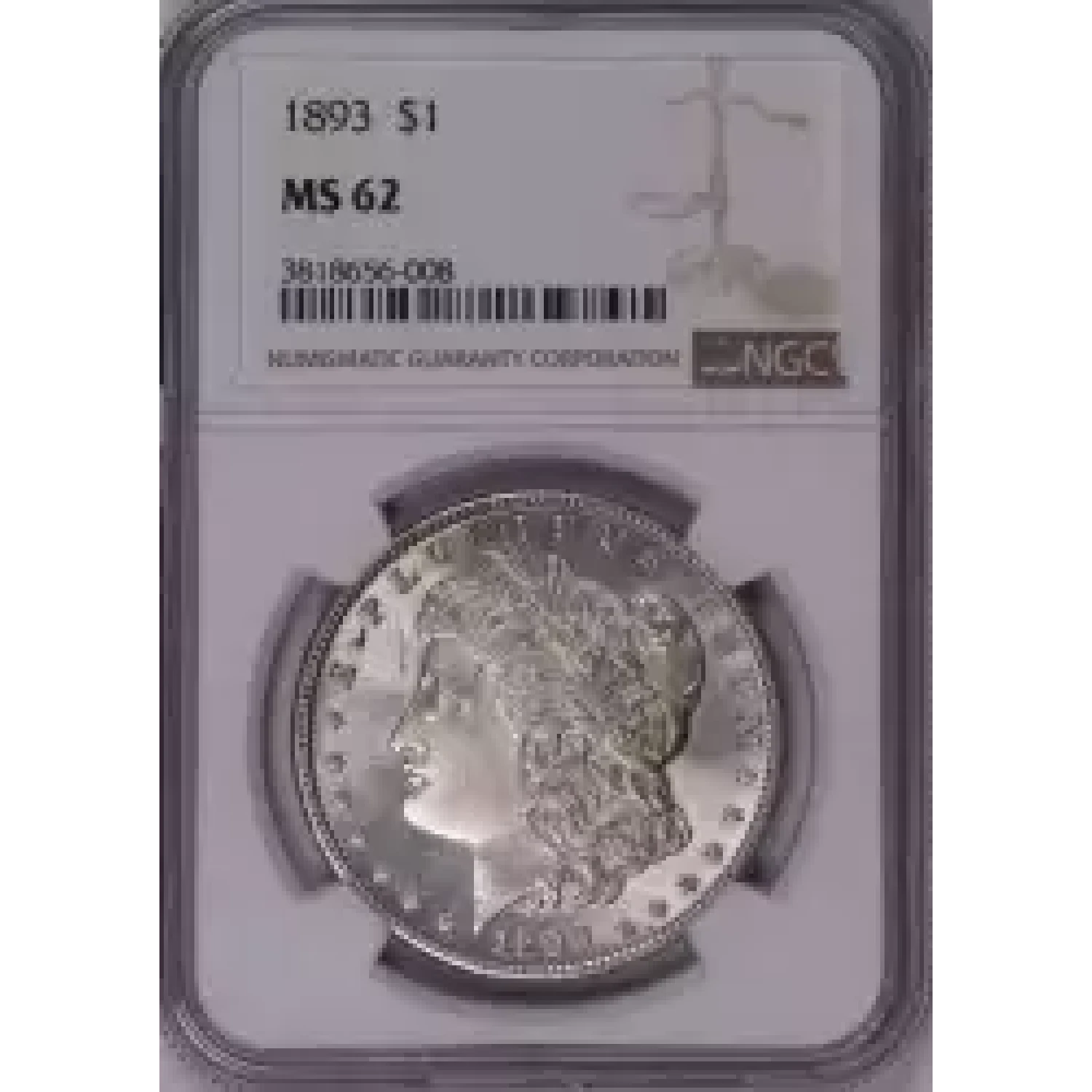 500372 | 1893 Morgan Silver Dollar NGC MS-62 | NGC | MS-62 | Sold: 08/02/2022 | $1,945 |