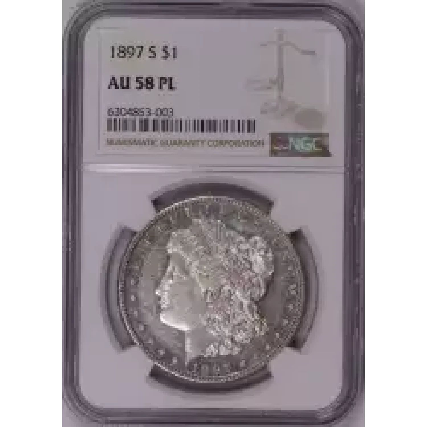 500411 | 1897-S Morgan Silver Dollar NGC AU-58 PL | NGC | AU-58 | Sold: 09/03/2022 | $175 |