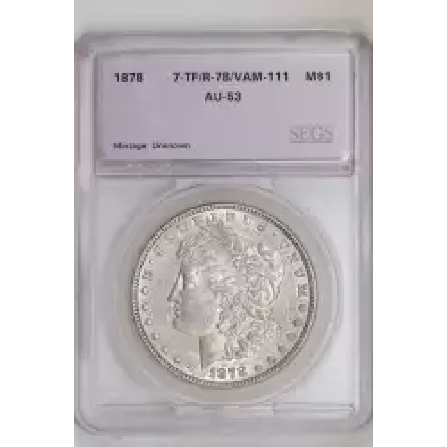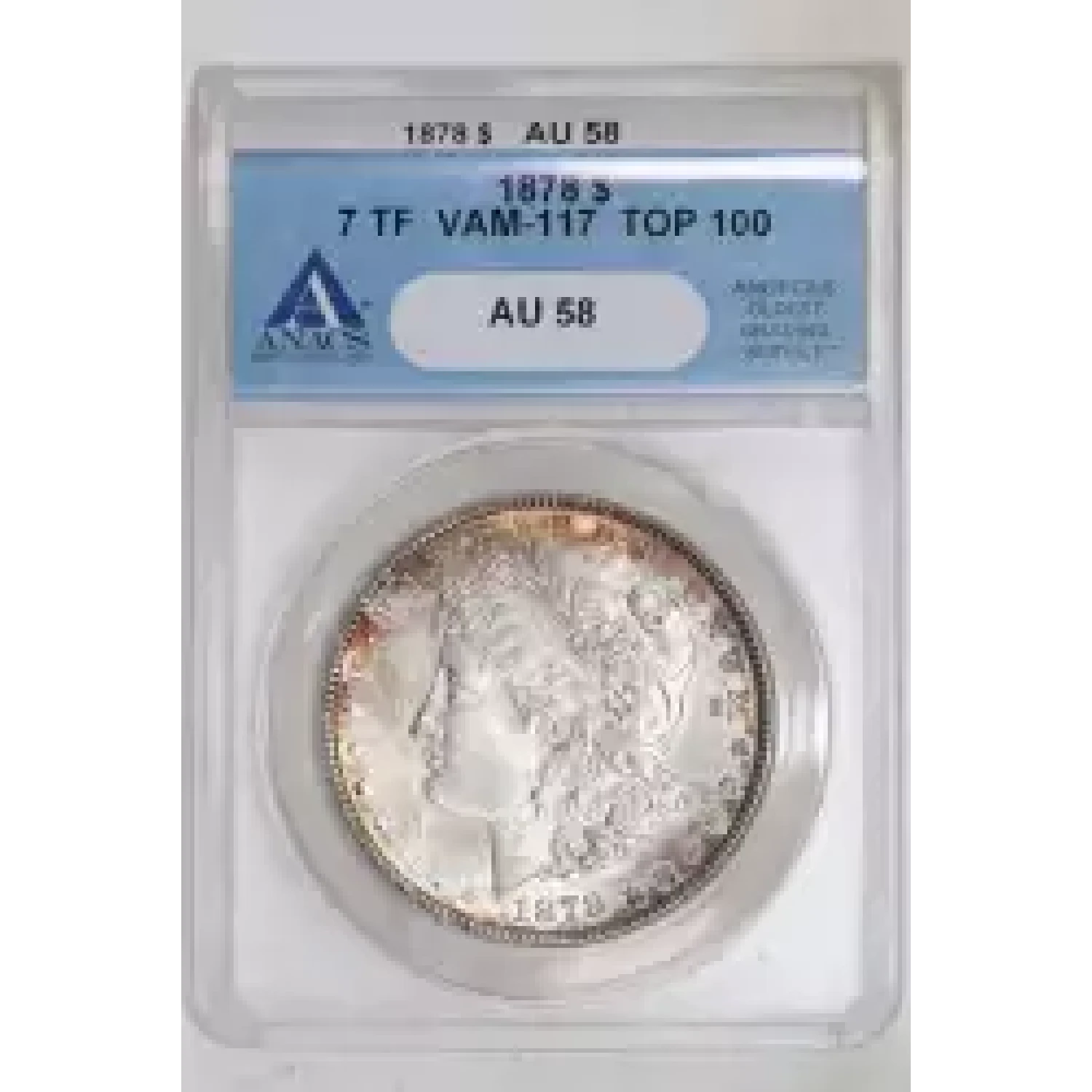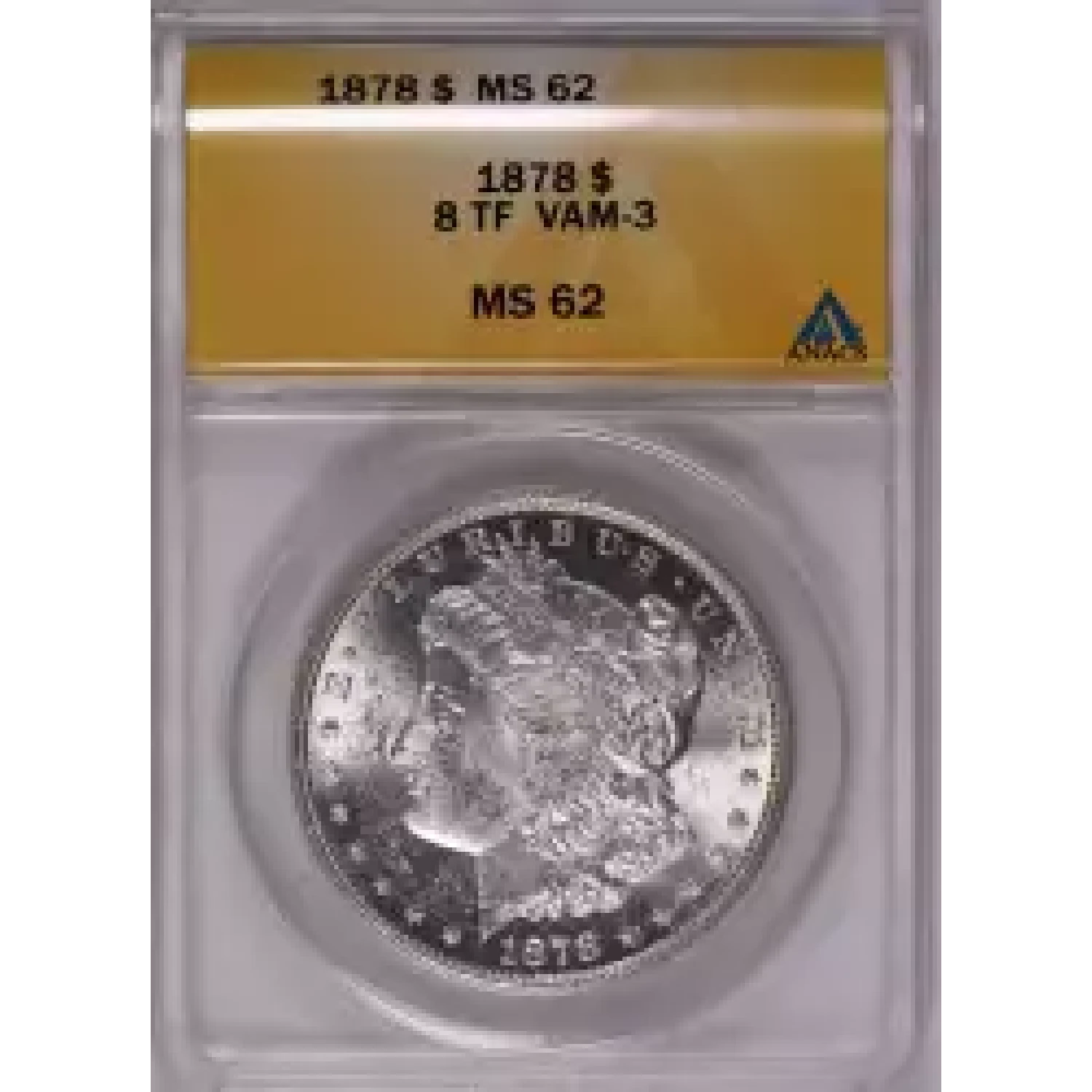 500611 | 1878 -8TF Morgan Silver Dollar ANACS MS-62 VAM-3 | ANACS | MS-62 | Sold: 02/08/2022 | $425 |