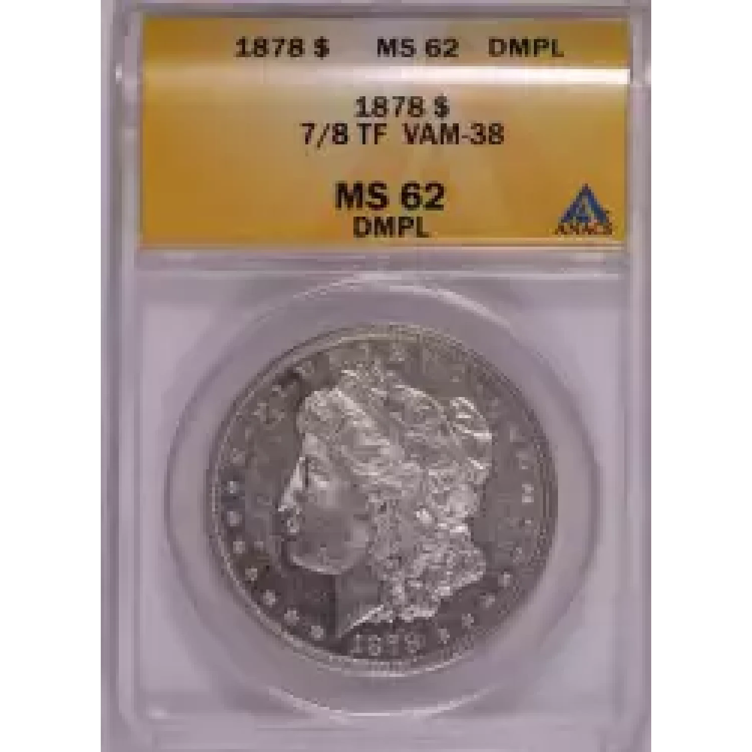 500643 | 1878 7/8TF Morgan Silver Dollar ANACS MS-62 DMPL VAM-38 | ANACS | MS-62 | Sold: 13/01/2023 | $720 |