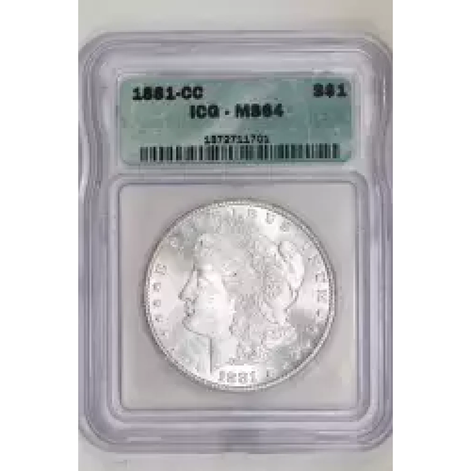 500578 | 1881-CC Morgan Silver Dollar PCGS MS-65 | PCGS | MS-65 | Sold: 04/04/2022 | $1,300 |