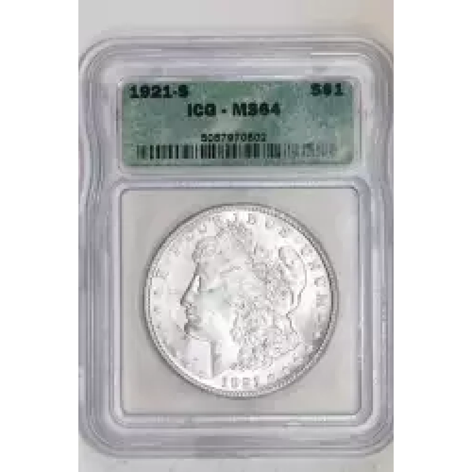 520028 | 1921-S Morgan Silver Dollar ICG MS-64 | ICG | MS-64 | Sold: 30/01/2024 | $225 |