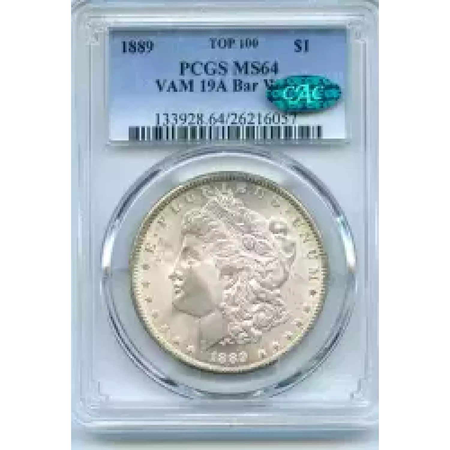 509158 | 1889-MS-64 Morgan Silver Dollar PCGS MS-64 | PCGS | MS-64 | Sold: 06/06/2018 | $500 |