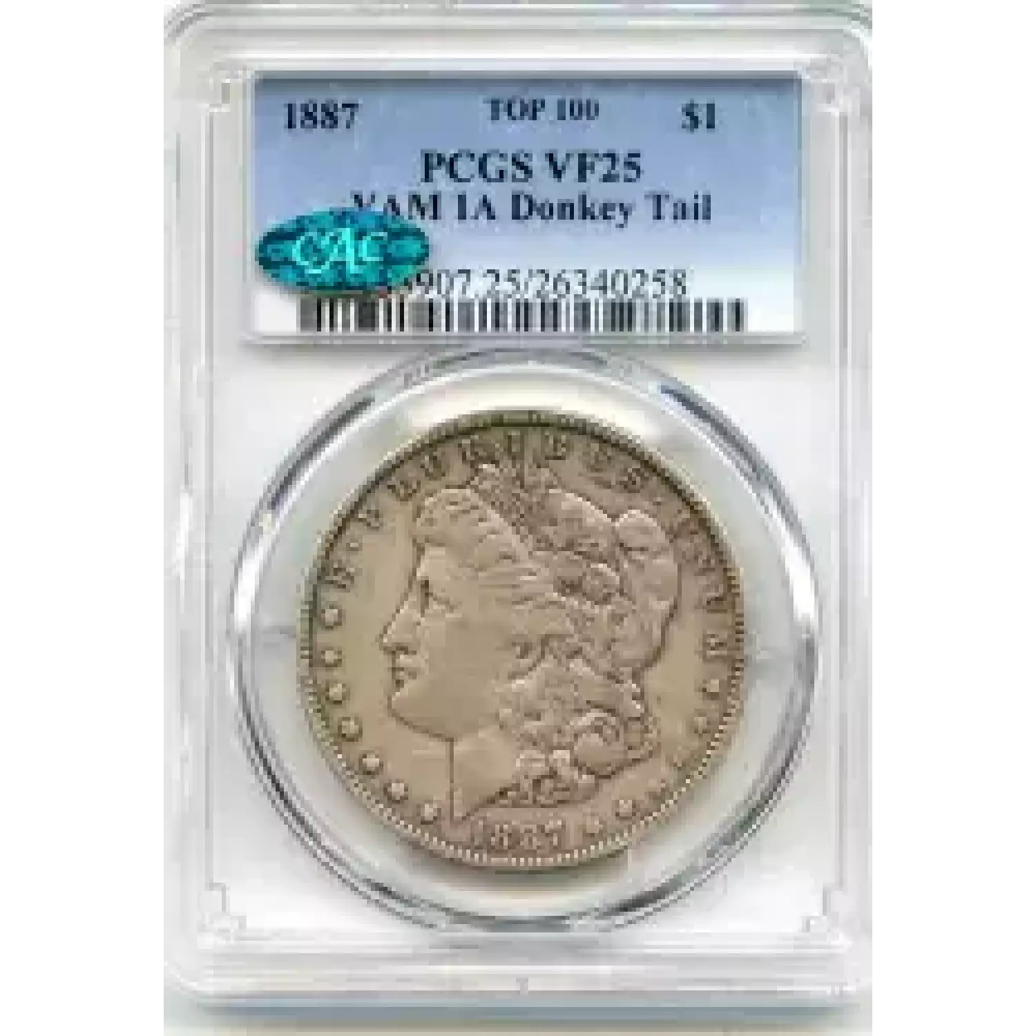 509162 | 1887-VF-25 Morgan Silver Dollar PCGS VF-25 CAC | PCGS | VF-25 | Sold: 23/02/2016 | $300 |