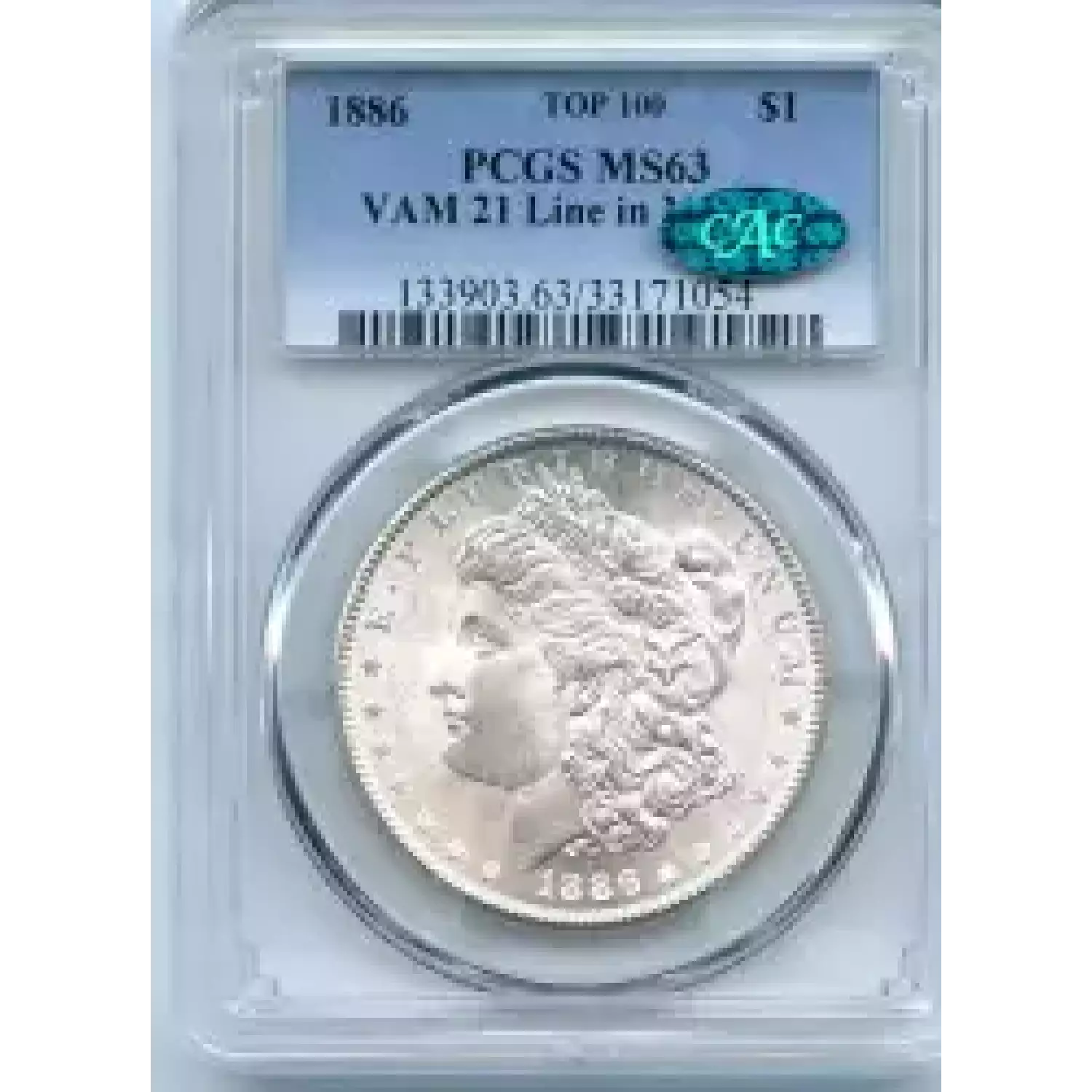 509179 | 1886-MS-63 Morgan Silver Dollar PCGS MS-63 CAC | PCGS | MS-63 | Sold: 18/07/2017 | $150 |