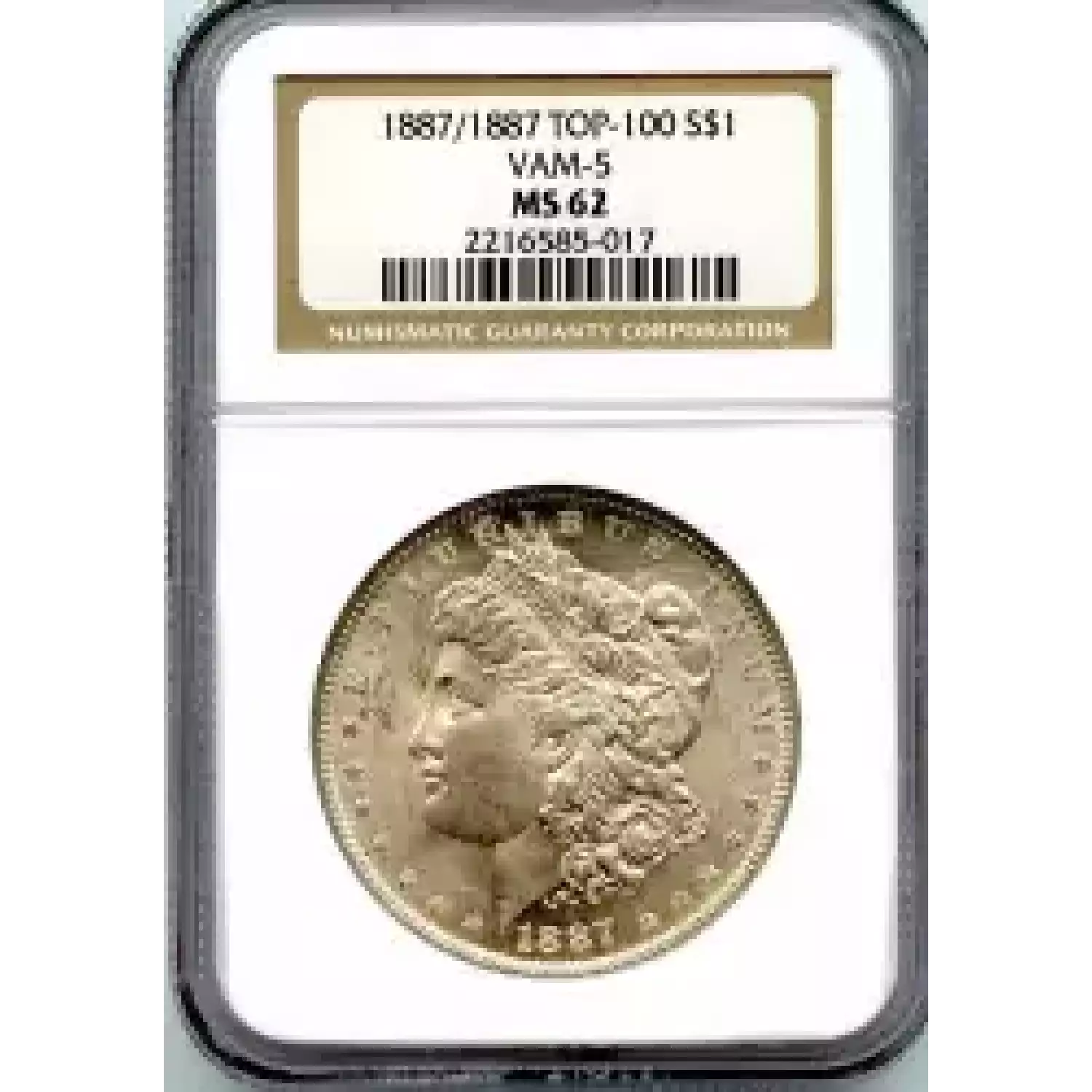 509789 | 1887-AU-58 Morgan Silver Dollar NGC AU-58 | NGC | AU-58 | Sold: 30/04/2017 | $100 |