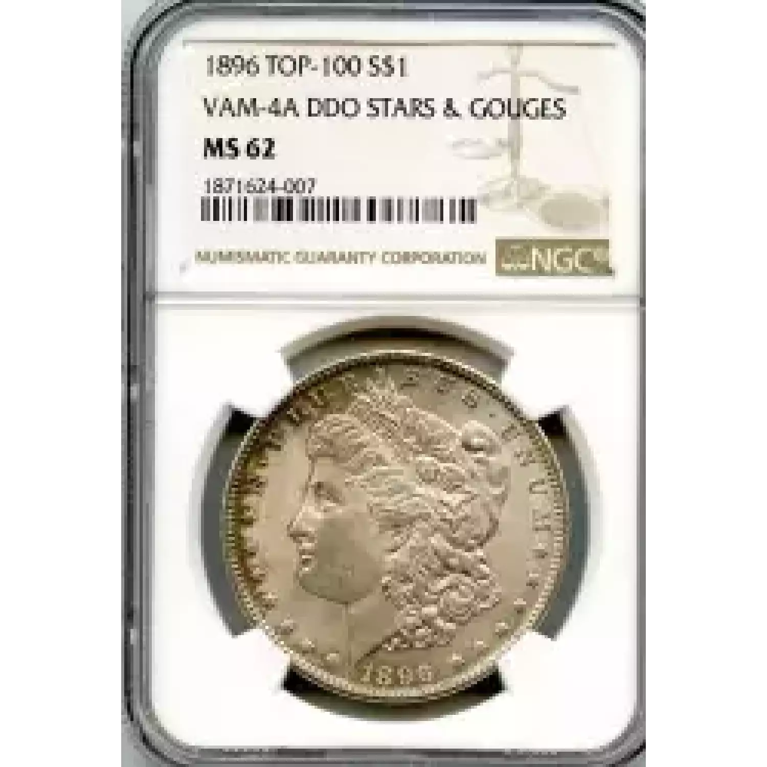 509846 | 1896-MS-62 Morgan Silver Dollar PCGS MS-62 CAC | PCGS | MS-62 | Sold: 01/03/2017 | $195 |