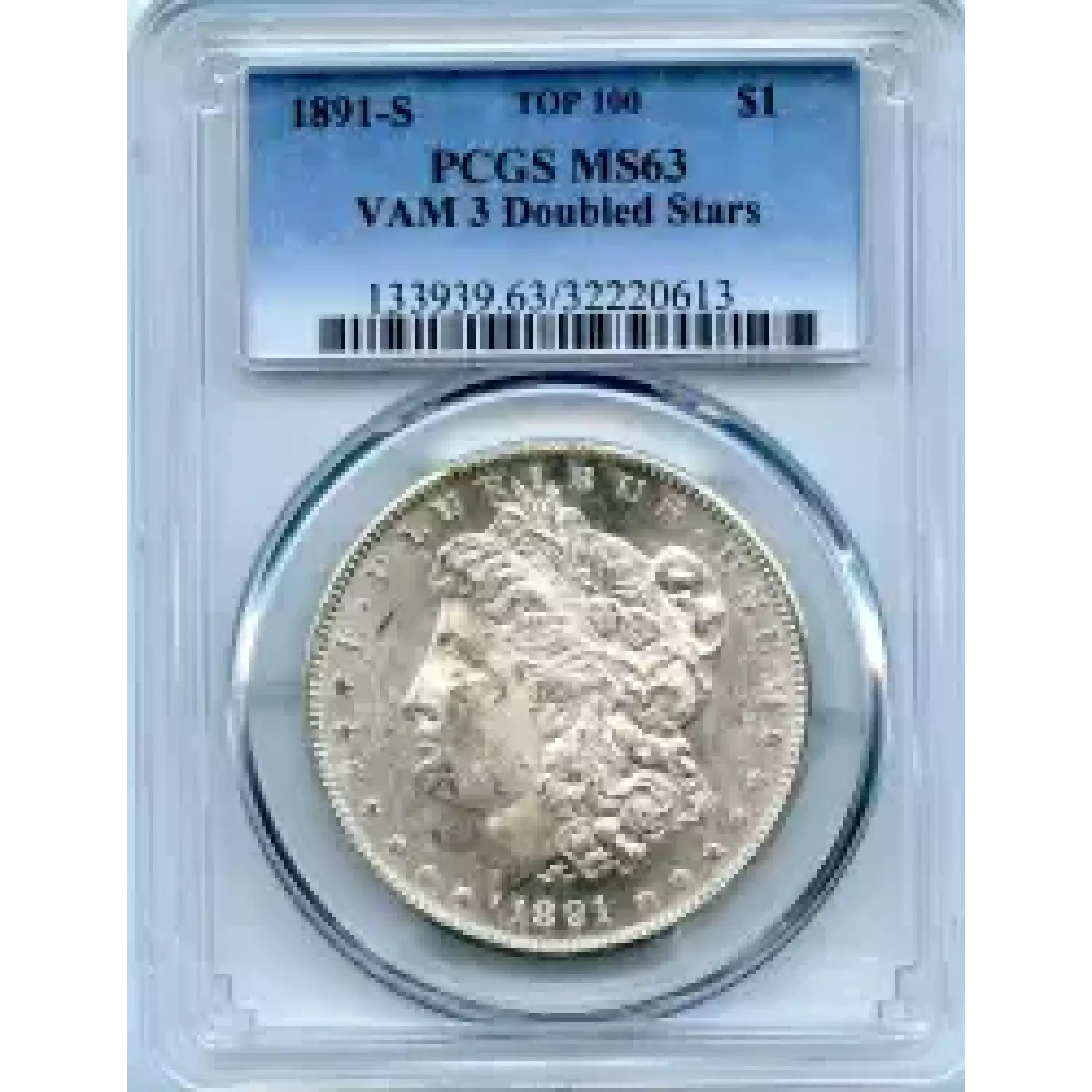 509293 | 1891-MS-63 Morgan Silver Dollar PCGS MS-63 | PCGS | MS-63 | Sold: 11/03/2016 | $350 |