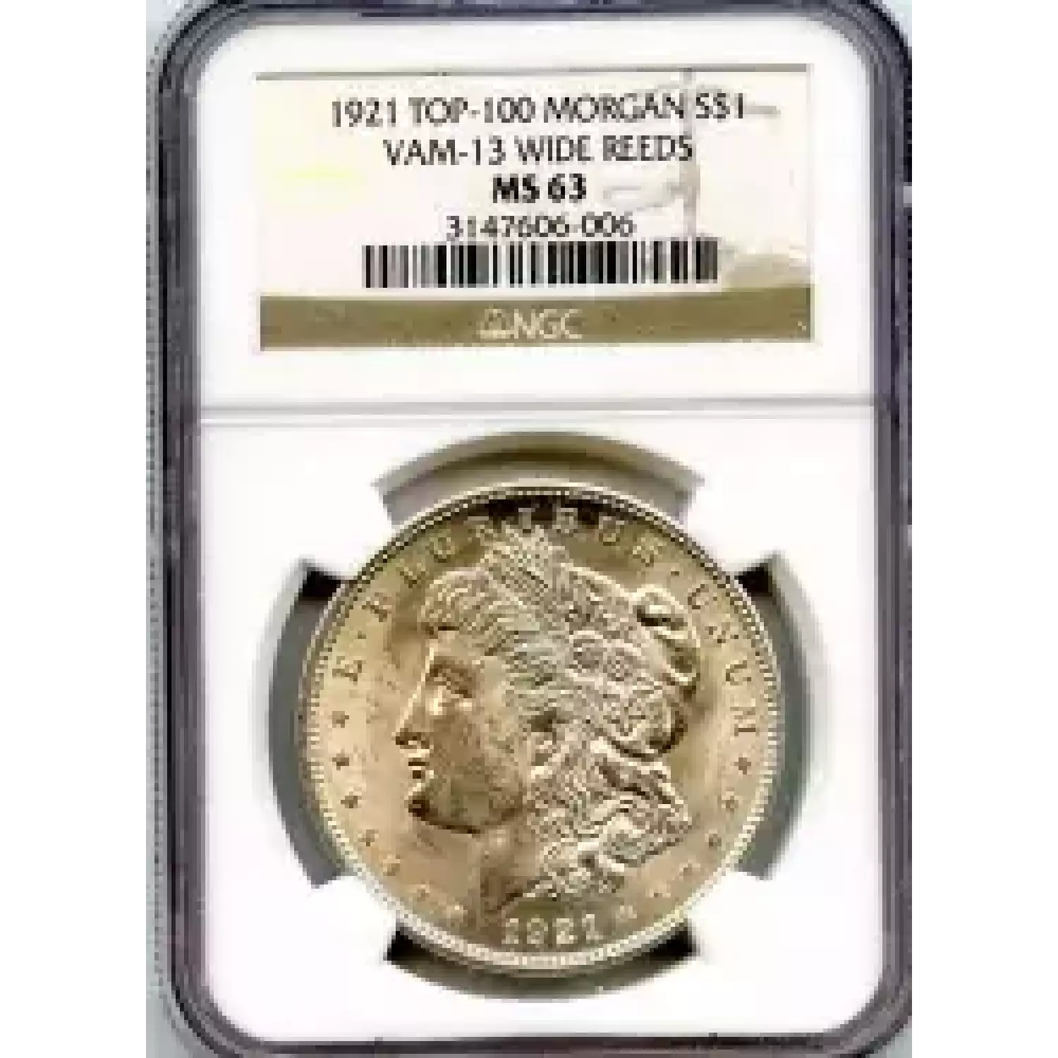 514437 | 1921-MS-64 Morgan Silver Dollar PCGS MS-64 | PCGS | MS-64 | Sold: 21/12/2020 | $1,500 |