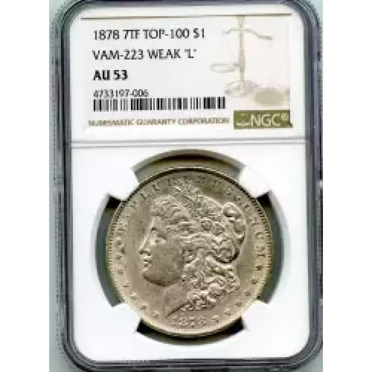 513361 | 1878-AU-55 Morgan Silver Dollar NGC AU-55 | NGC | AU-55 | Sold: 20/10/2019 | $1,900 |