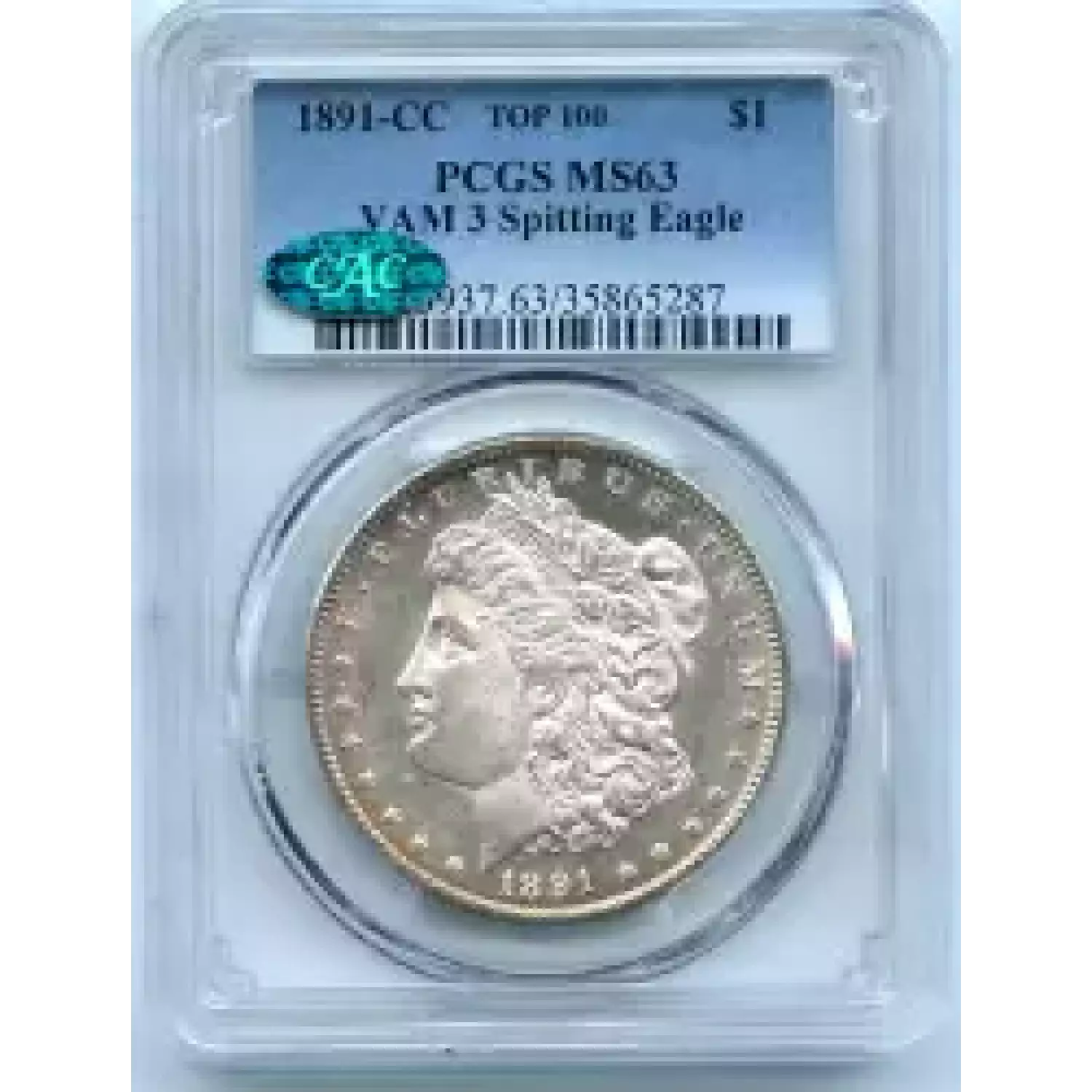514417 | 1891-MS-64 Morgan Silver Dollar PCGS MS-64 | PCGS | MS-64 | Sold: 18/01/2021 | $1,050 |