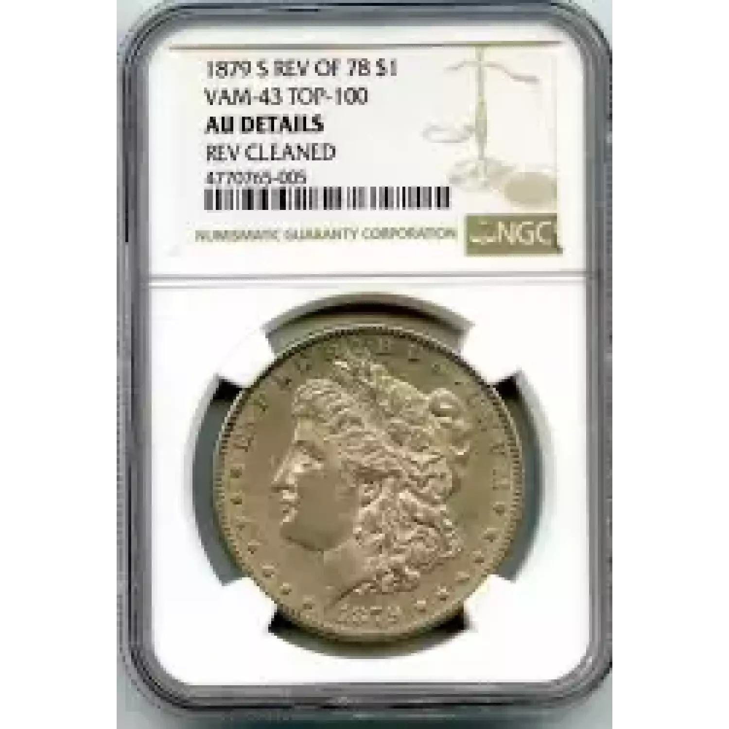 514439 | 1879-AU-55 Morgan Silver Dollar PCGS AU-55 | PCGS | AU-55 | Sold: 08/12/2020 | $500 |