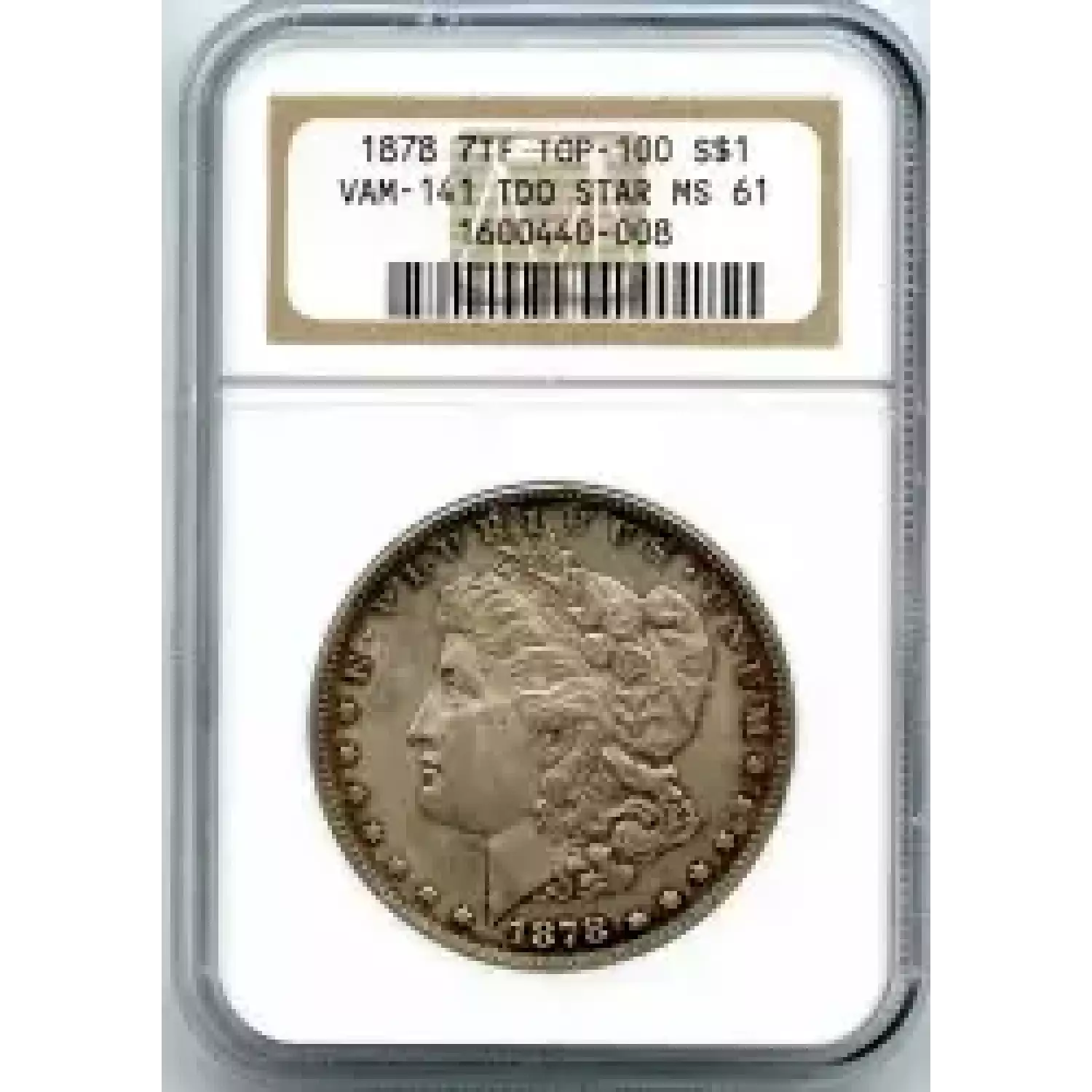 514361 | 1878-MS-62 Morgan Silver Dollar PCGS MS-62 | PCGS | MS-62 | Sold: 02/11/2020 | $100 |
