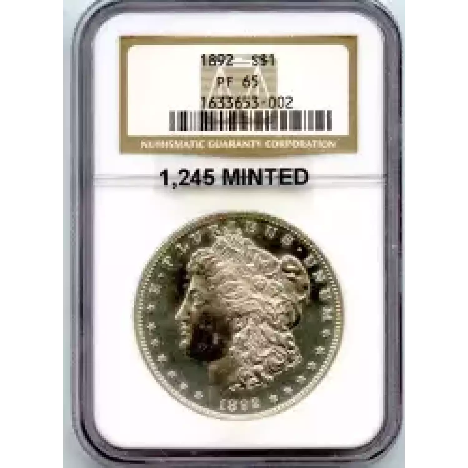 513322 | 1892-PR-65 Morgan Silver Dollar NGC PR-65 CAM | NGC | PR-65 | Sold: 16/12/2019 | $5,150 |