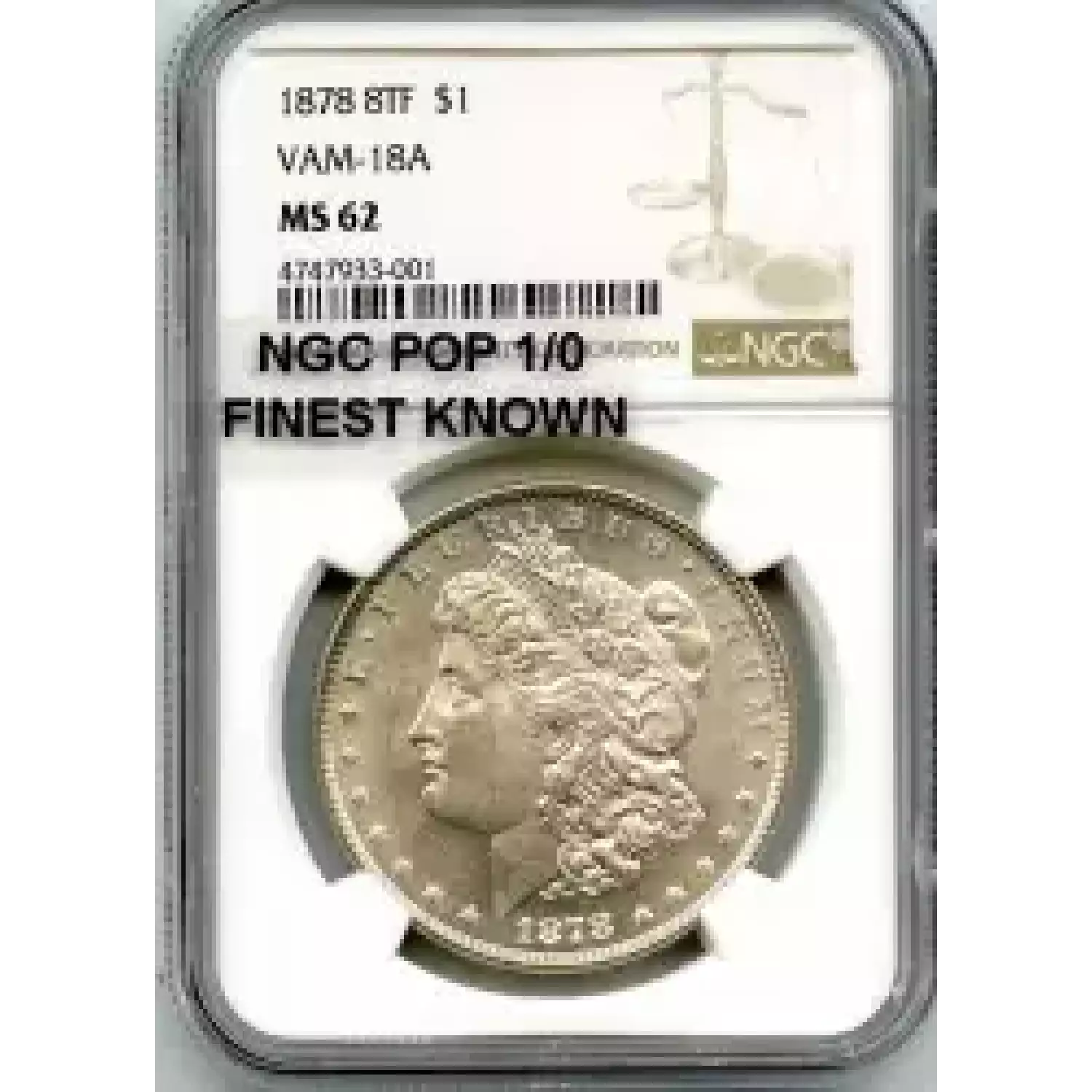 513356 | 1878-MS-61 Morgan Silver Dollar PCGS MS-61 | PCGS | MS-61 | Sold: 15/10/2019 | $3,300 |