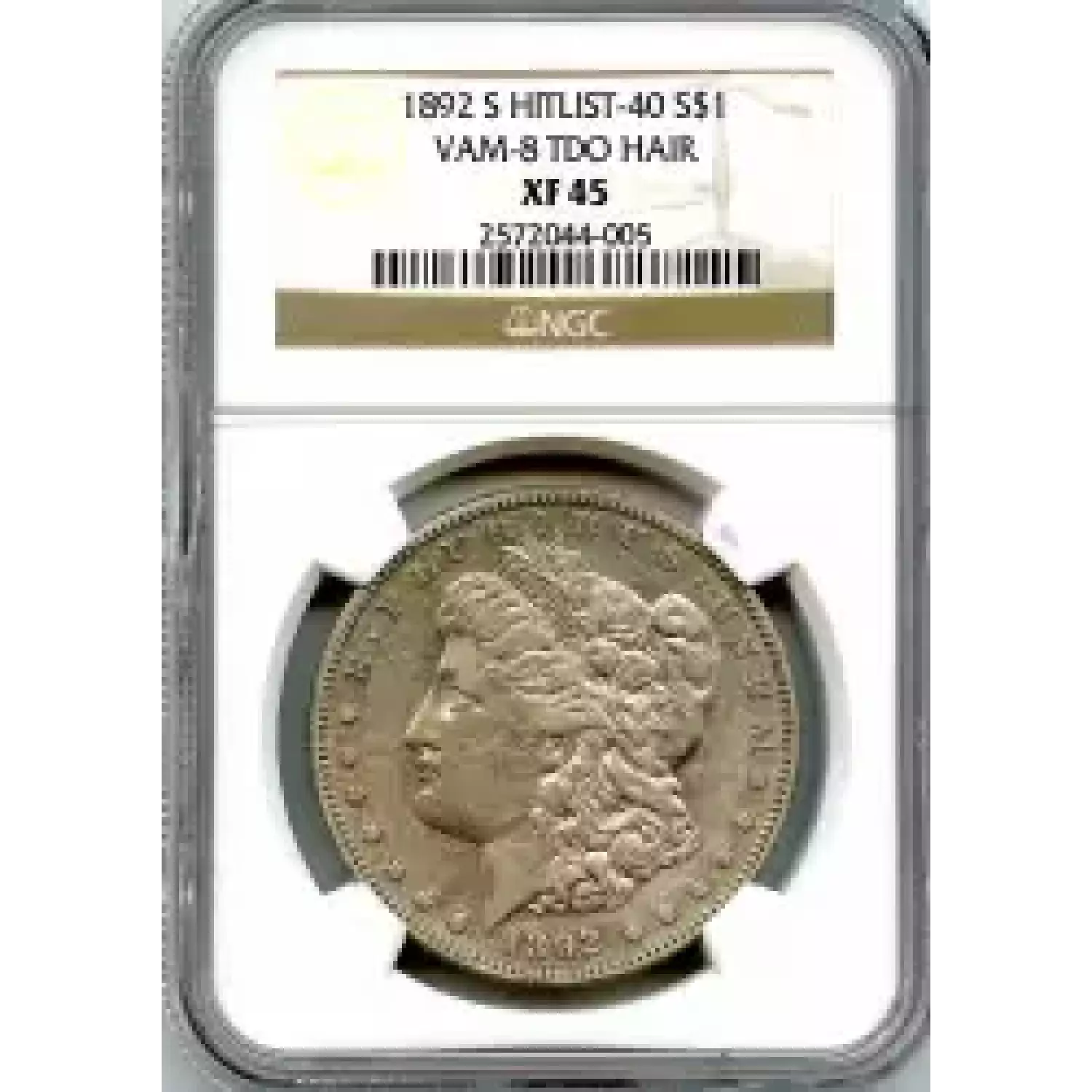 514414 | 1892-AU-55 Morgan Silver Dollar PCGS AU-55 | PCGS | AU-55 | Sold: 05/11/2020 | $780 |