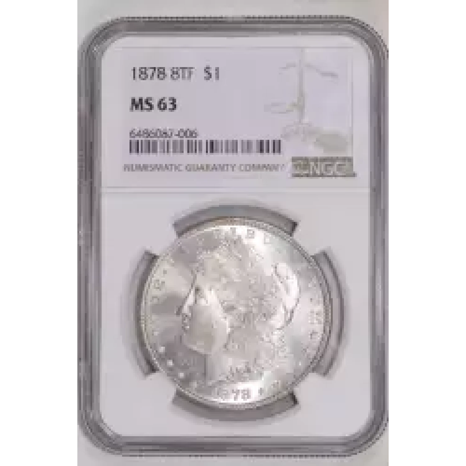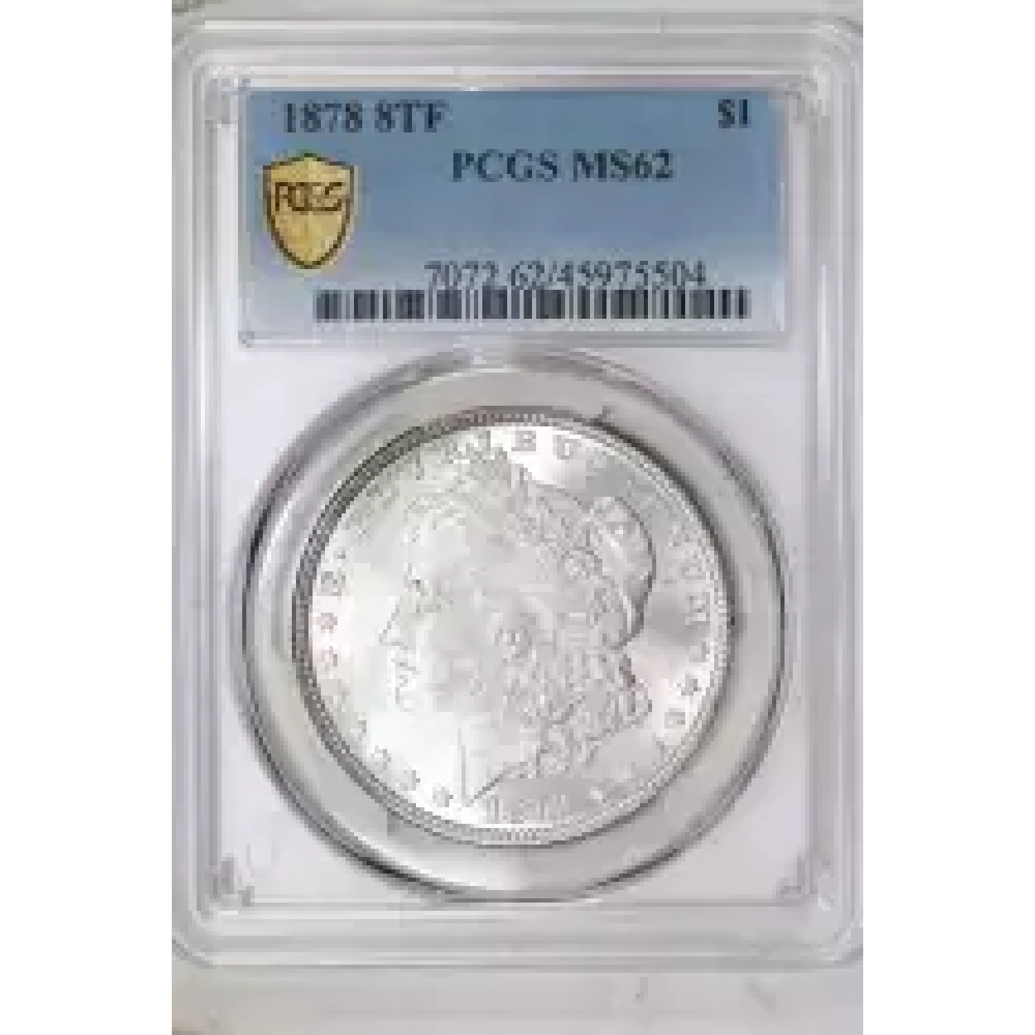 516167 | 1878 Morgan Silver Dollar PCGS MS-62 8TF | PCGS | MS-62 | Sold: 10/02/2023 | $360 |