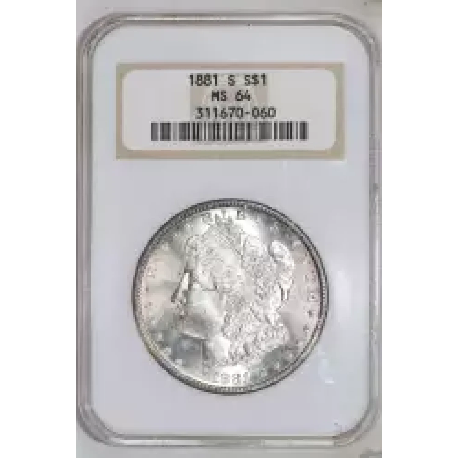 516083 | 1881-S Morgan Silver Dollar NGC MS-64 | NGC | MS-64 | Sold: 05/12/2022 | $125 |