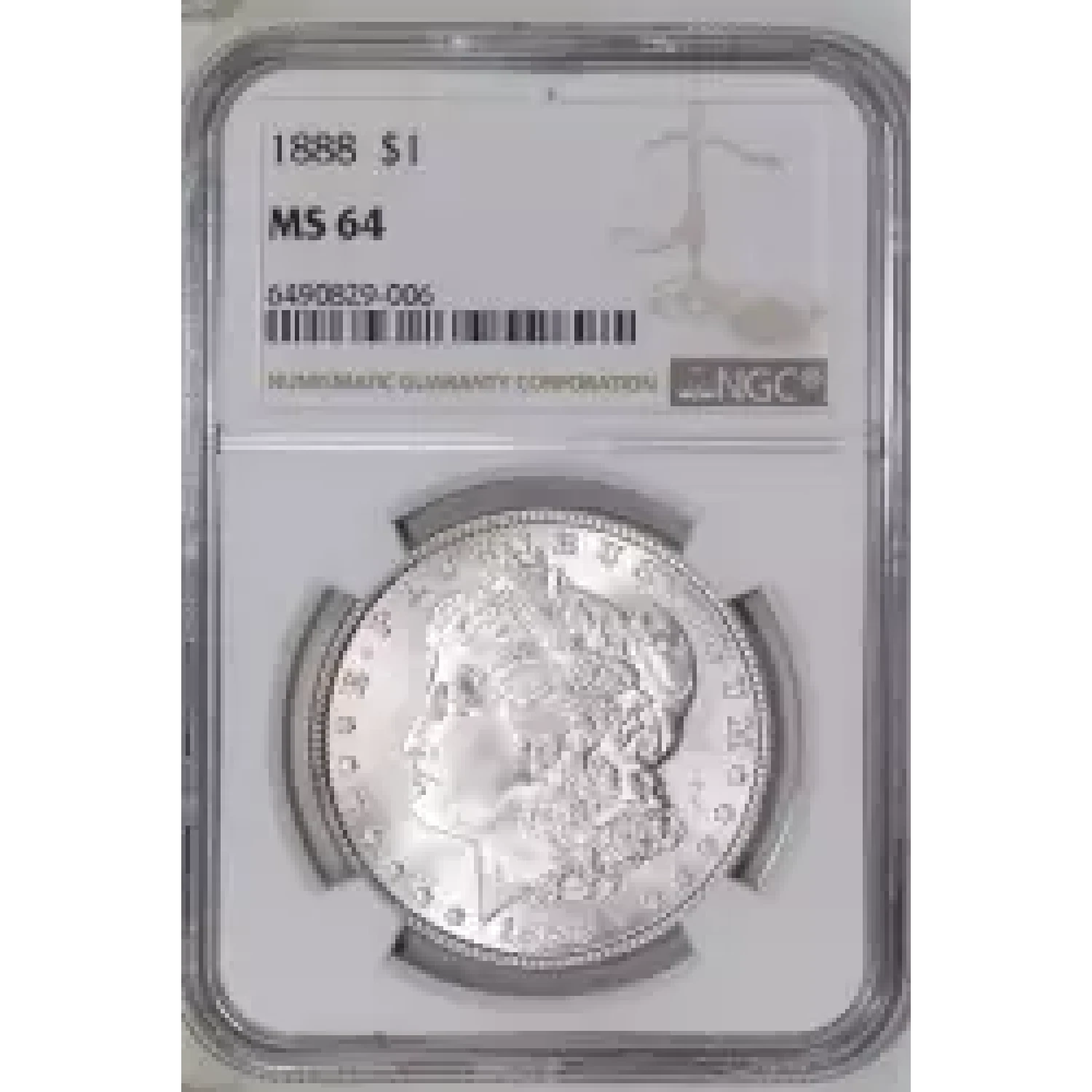 518279 | 1888 Morgan Silver Dollar NGC MS-64 | NGC | MS-64 | Sold: 07/06/2023 | $145 |