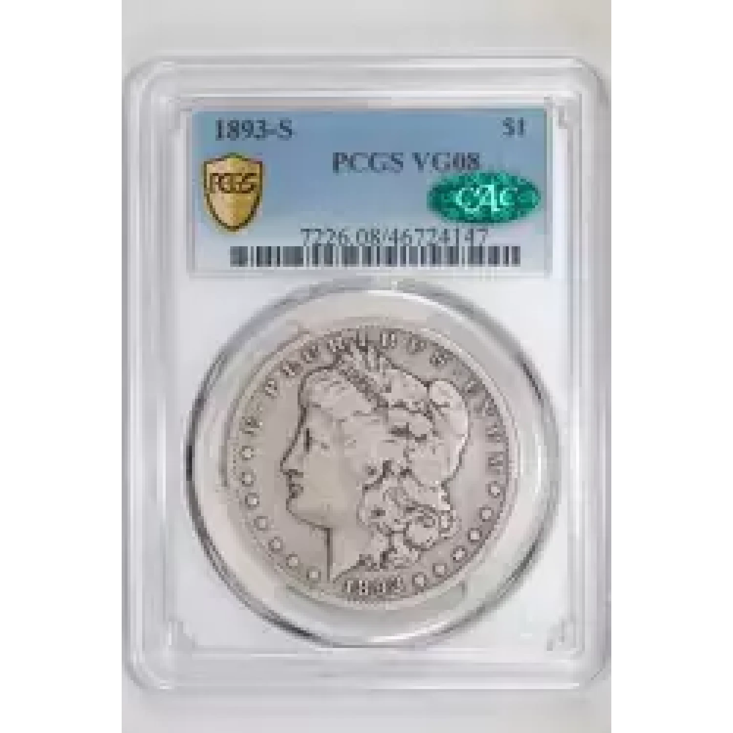 518076 | 1893-S Morgan Silver Dollar PCGS VG-8 | PCGS | VG-8 | Sold: 11/05/2023 | $5,350 |