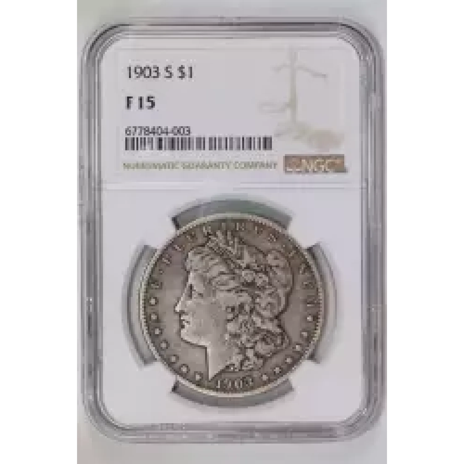 517969 | 1903-S Morgan Silver Dollar NGC F-15 | NGC | F-15 | Sold: 10/07/2023 | $190 |
