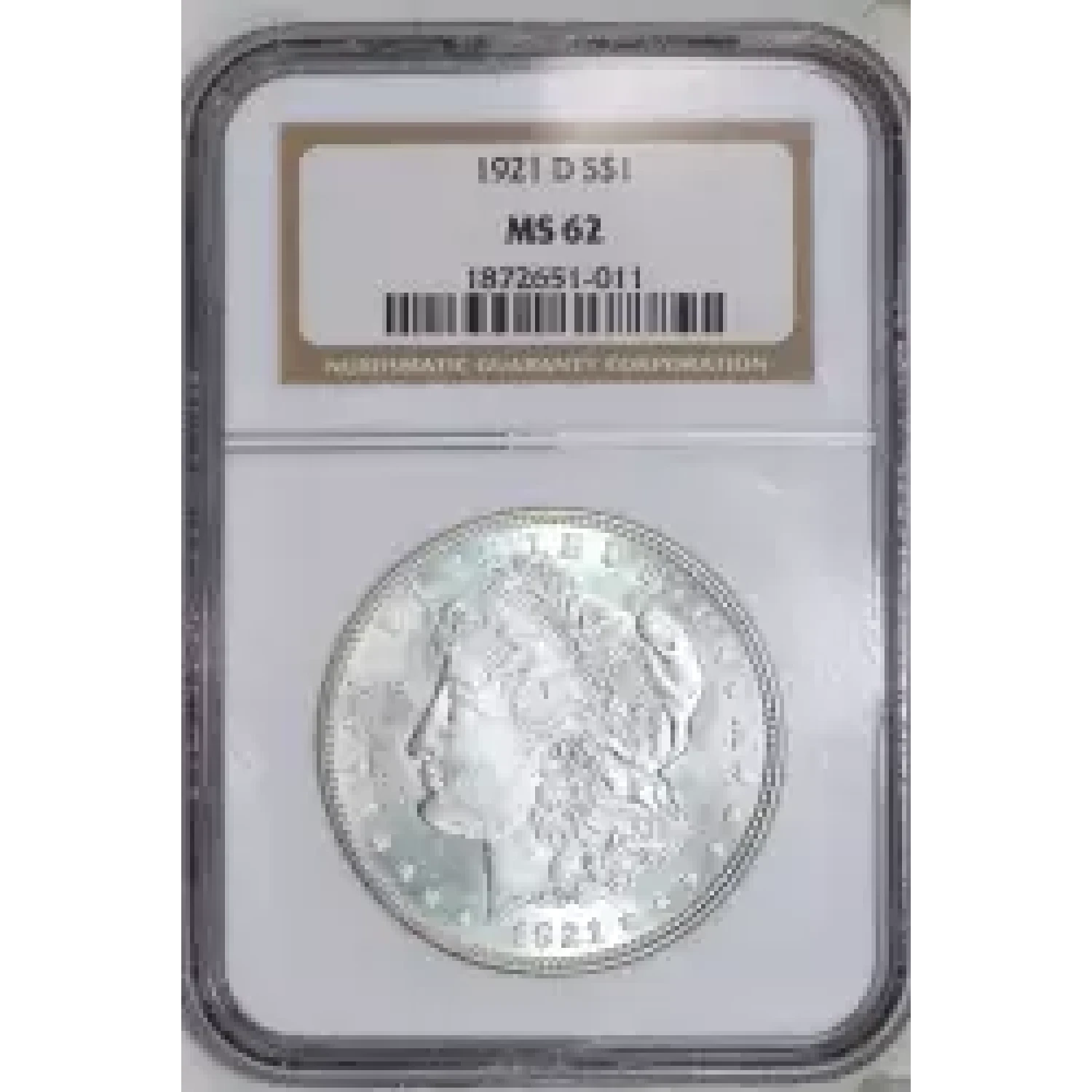 517982 | 1921-D Morgan Silver Dollar NGC MS-62 | NGC | MS-62 | Sold: 02/05/2023 | $85 |