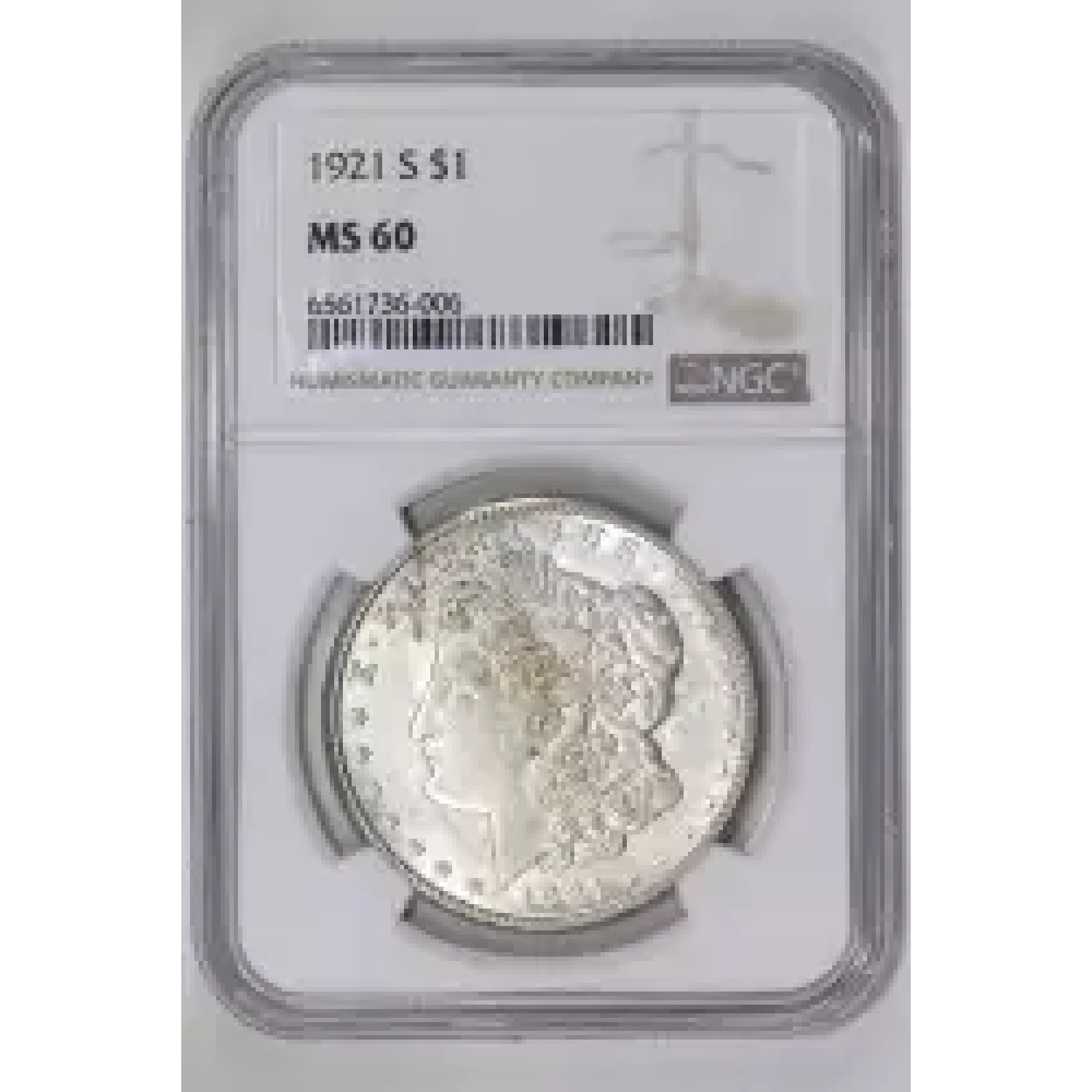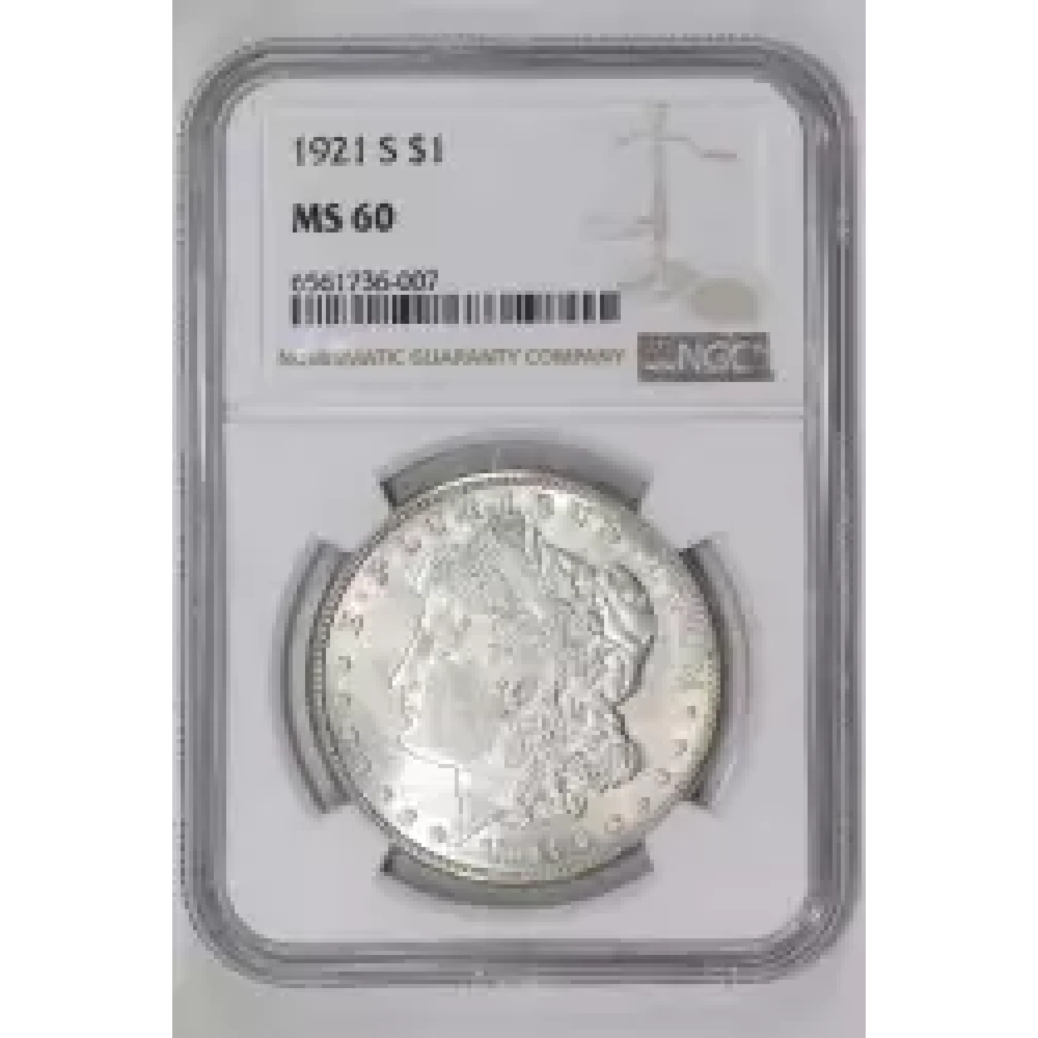 517988 | 1921-S Morgan Silver Dollar NGC MS-60 | NGC | MS-60 | Sold: 07/08/2023 | $75 |