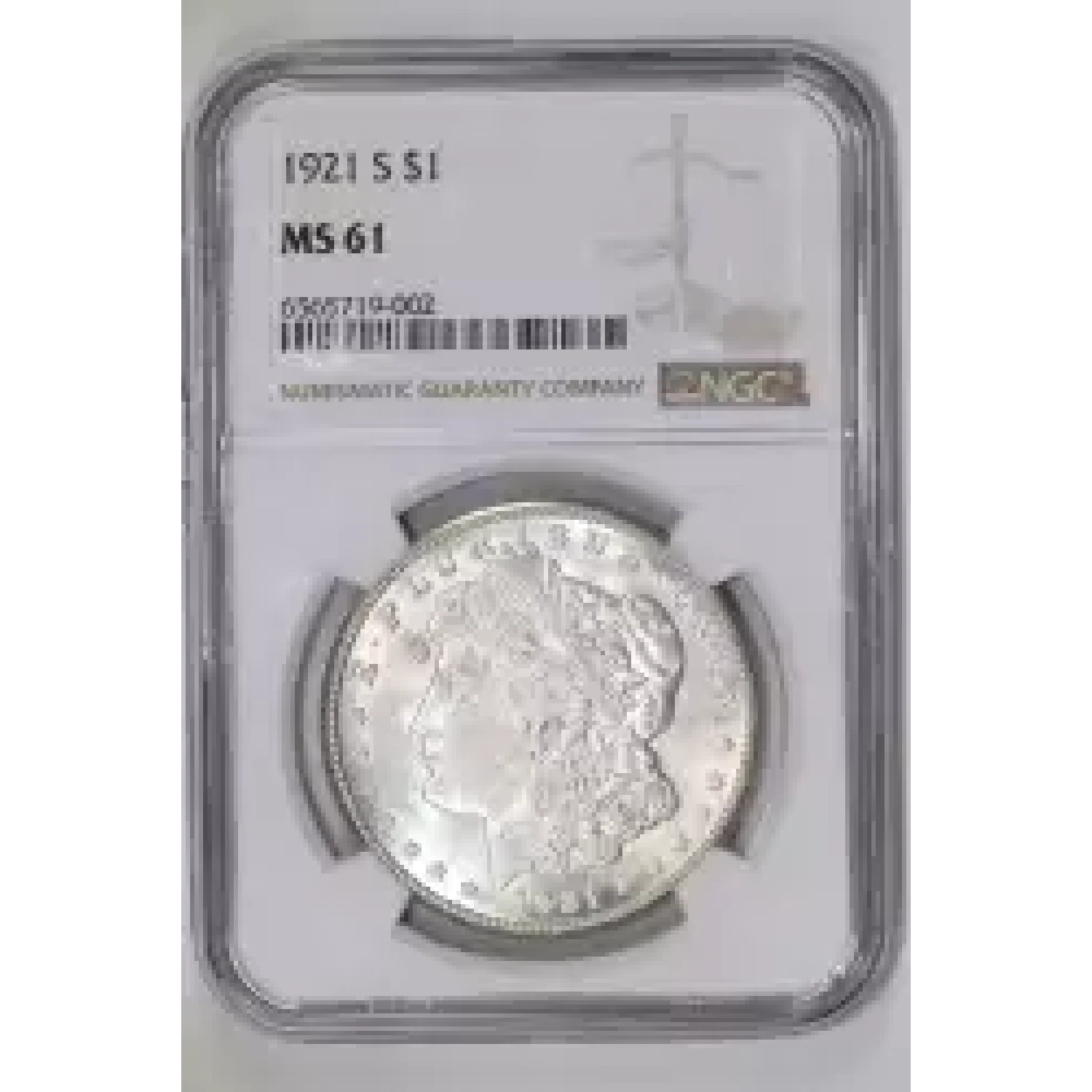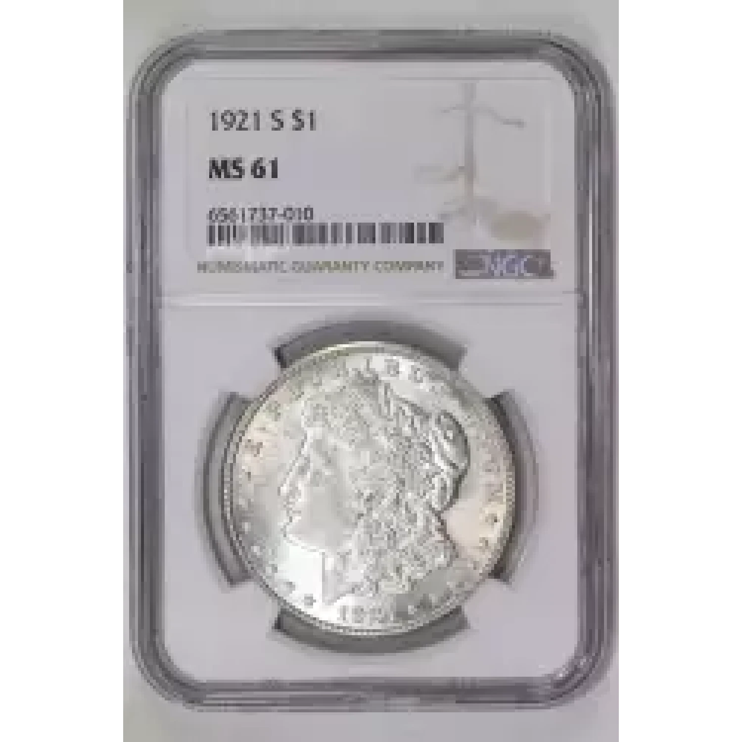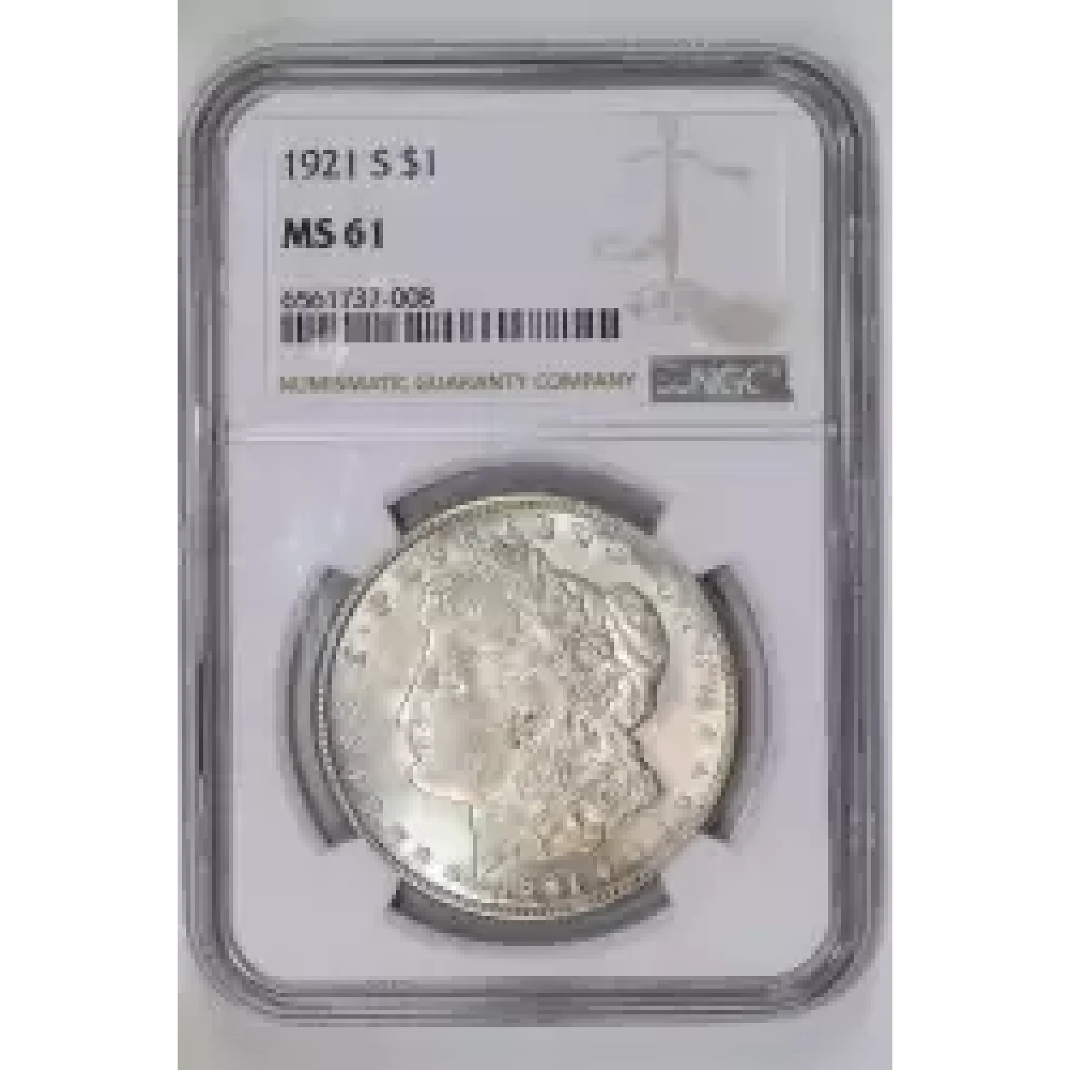 517991 | 1921-S Morgan Silver Dollar NGC MS-61 | NGC | MS-61 | Sold: 25/04/2023 | $83 |