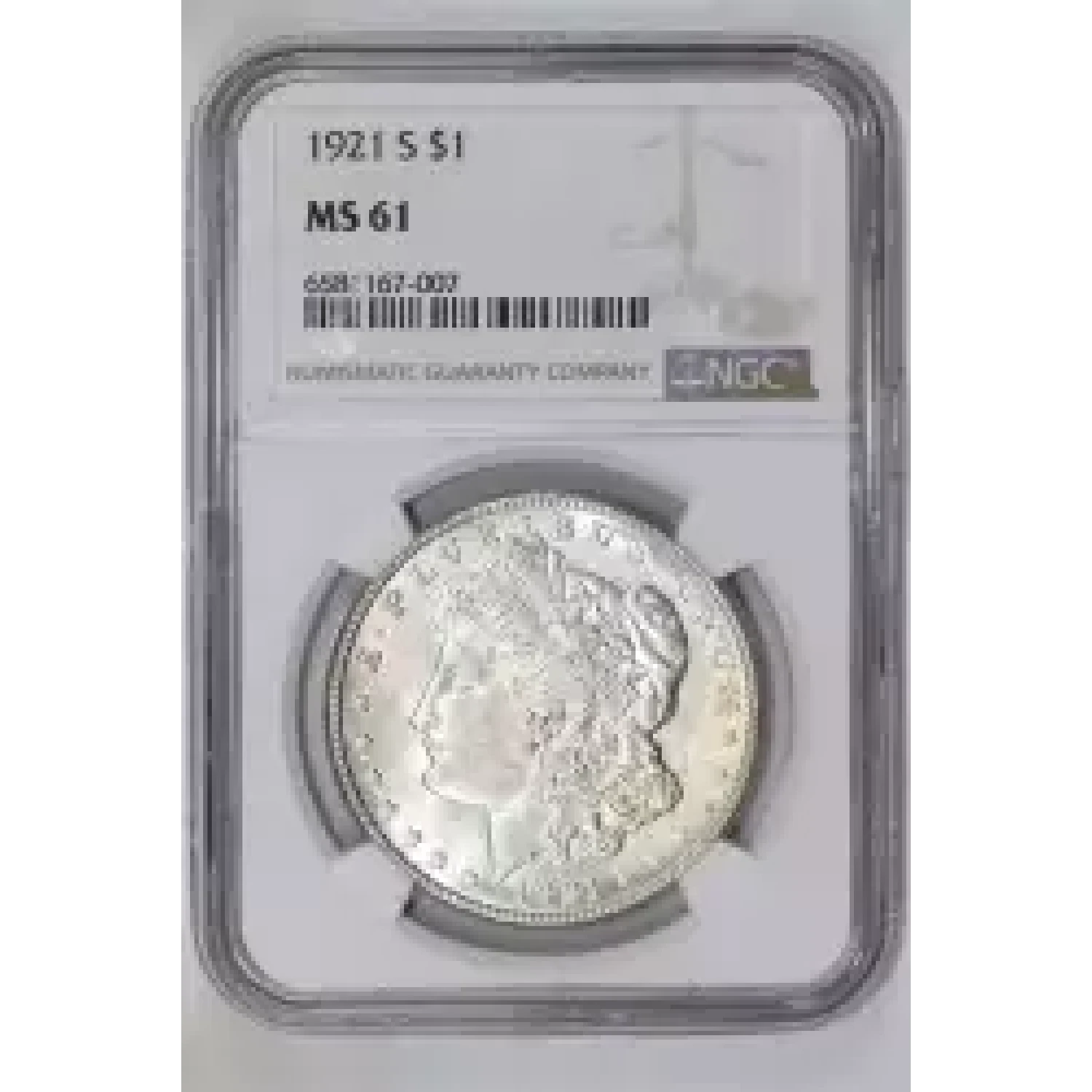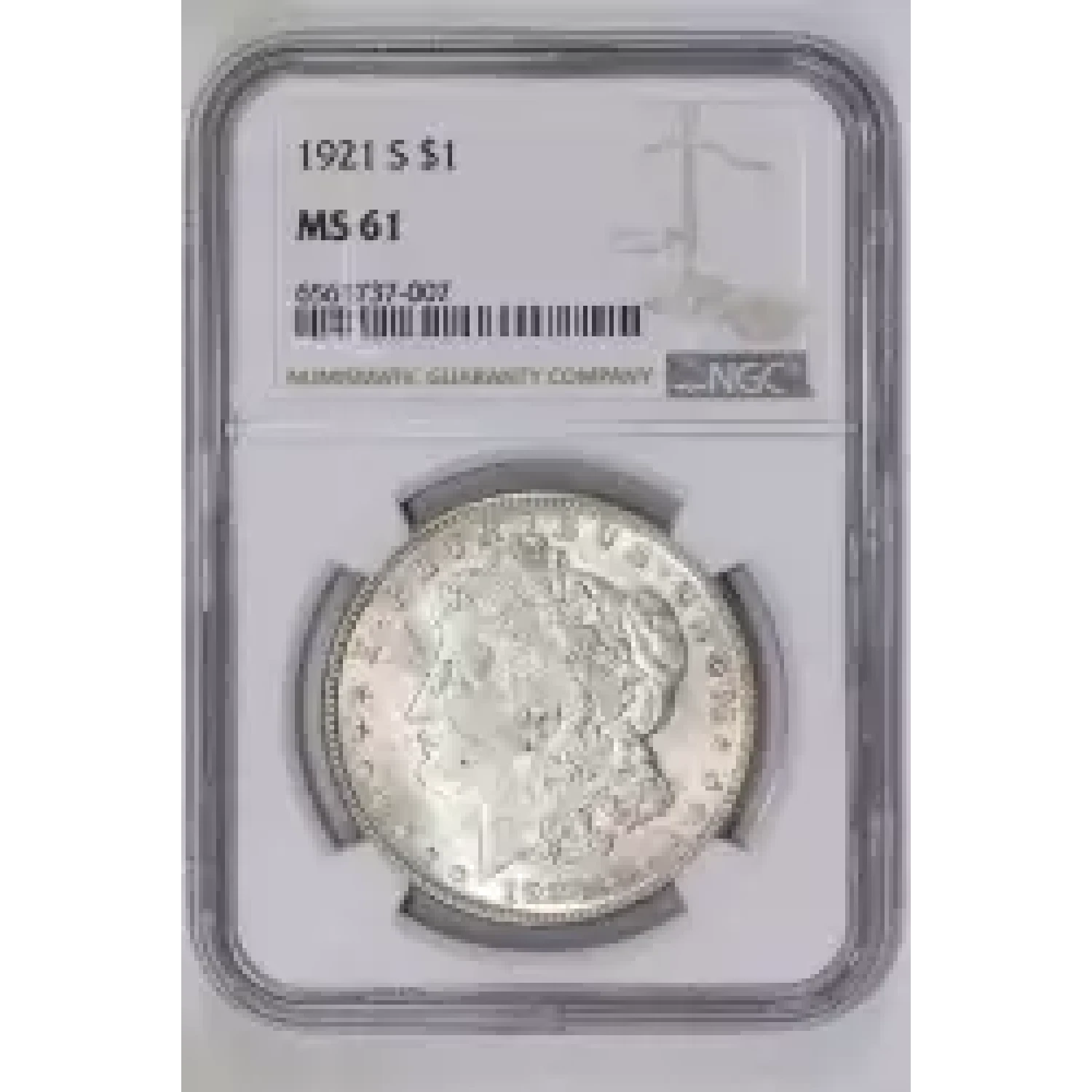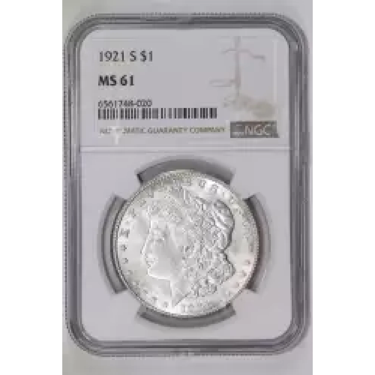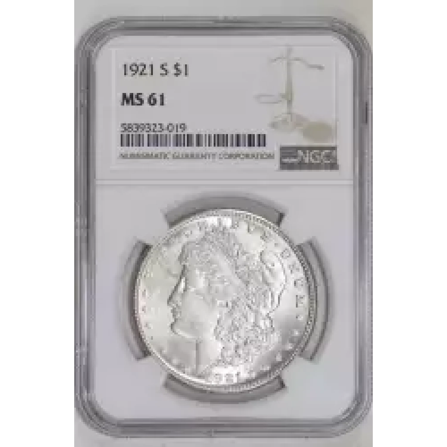 517991 | 1921-S Morgan Silver Dollar NGC MS-61 | NGC | MS-61 | Sold: 25/04/2023 | $83 |
