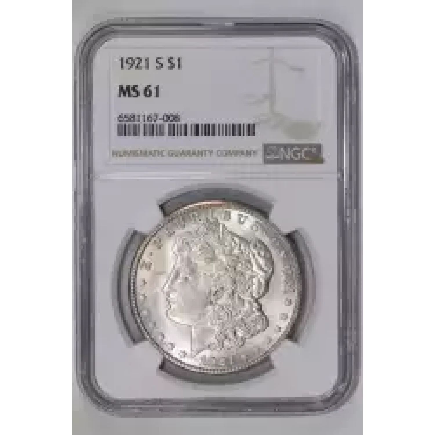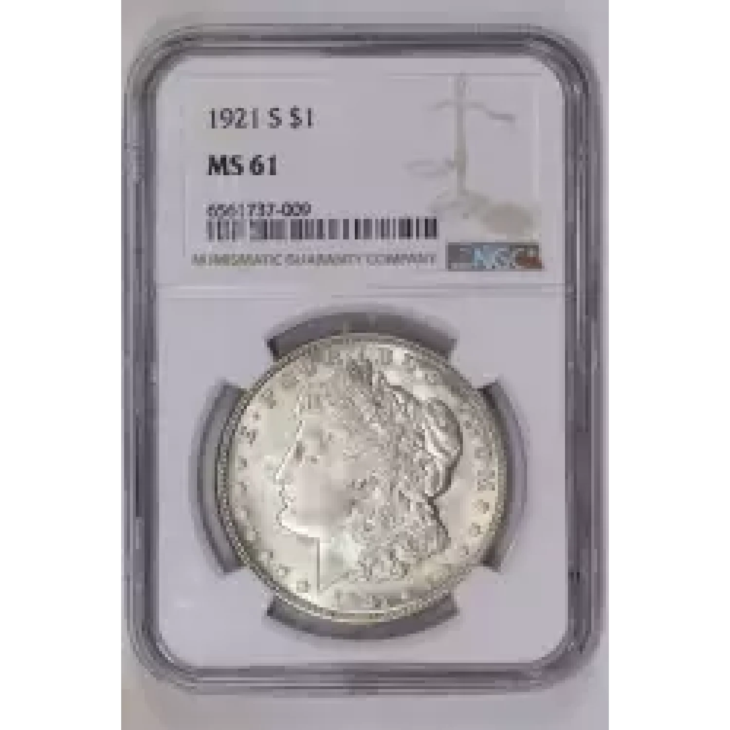 517999 | 1921-S Morgan Silver Dollar NGC MS-61 | NGC | MS-61 | Sold: 03/07/2023 | $83 |