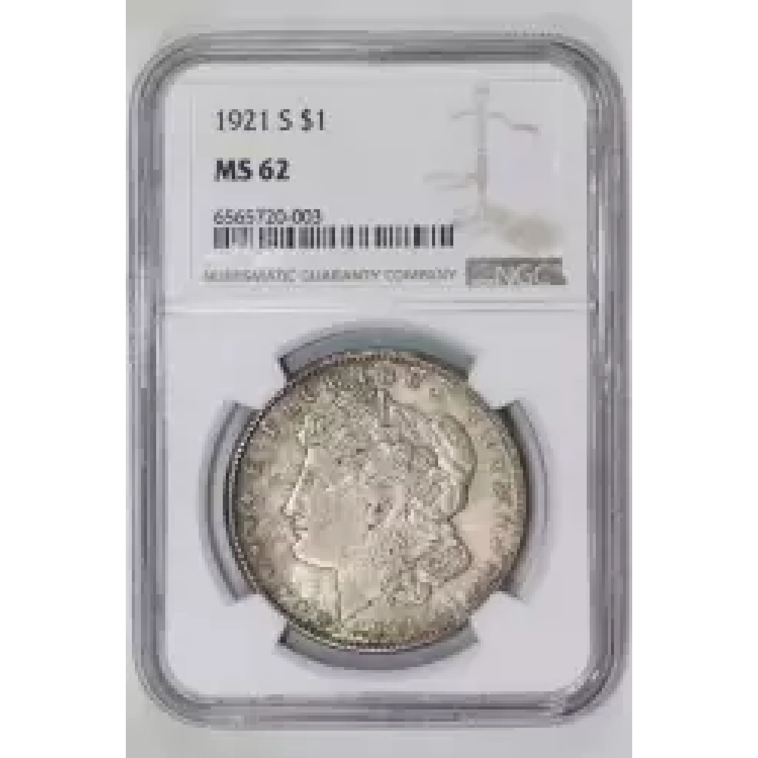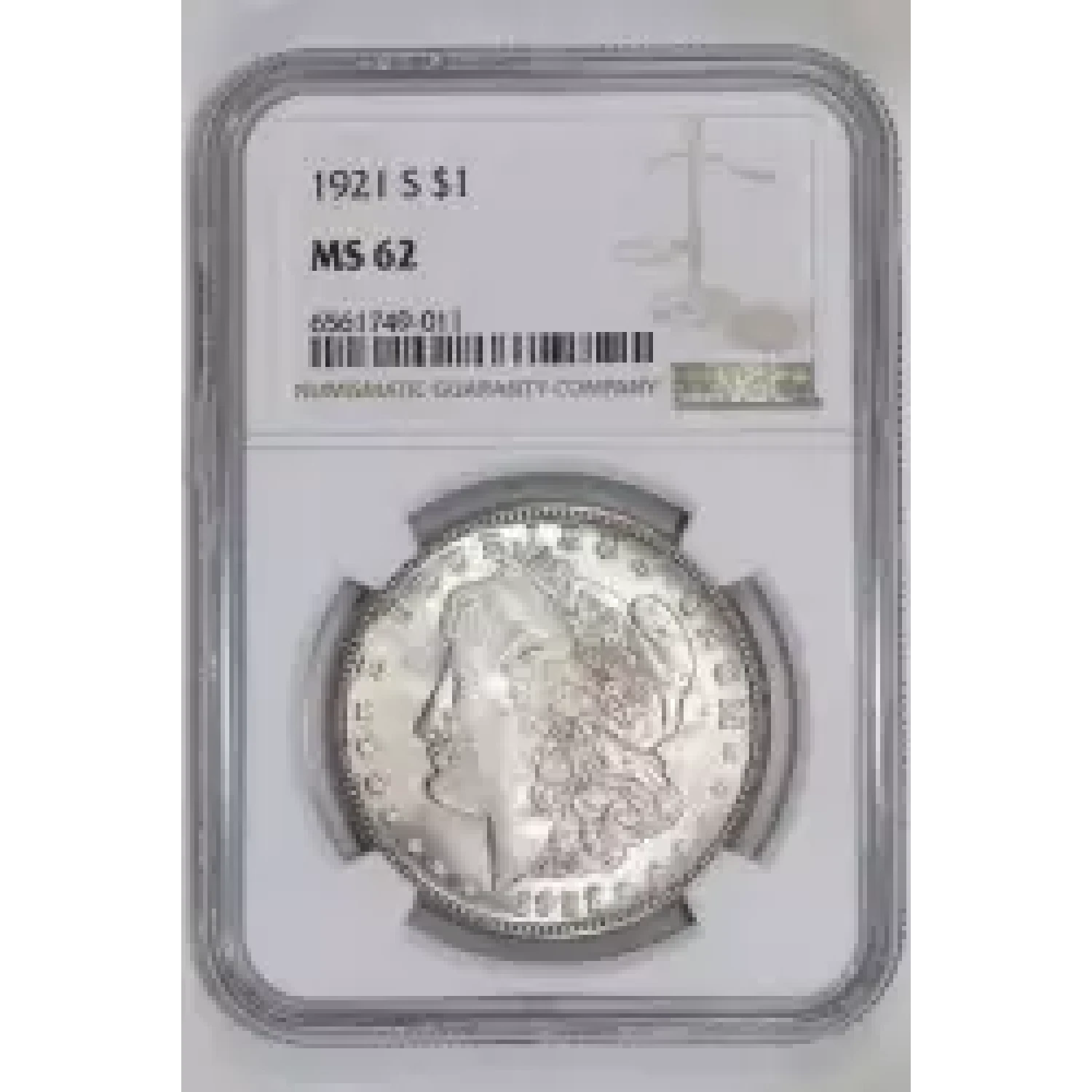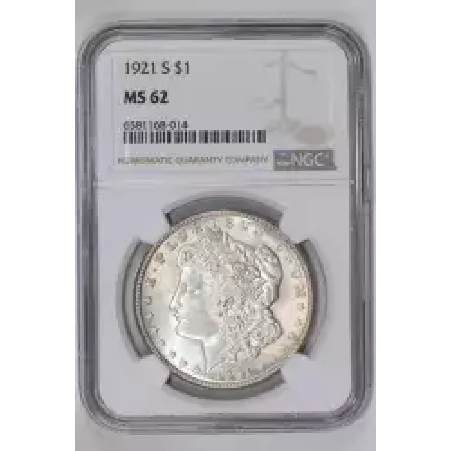 518014 | 1921-S Morgan Silver Dollar NGC MS-62 | NGC | MS-62 | Sold: 20/07/2023 | $90 |