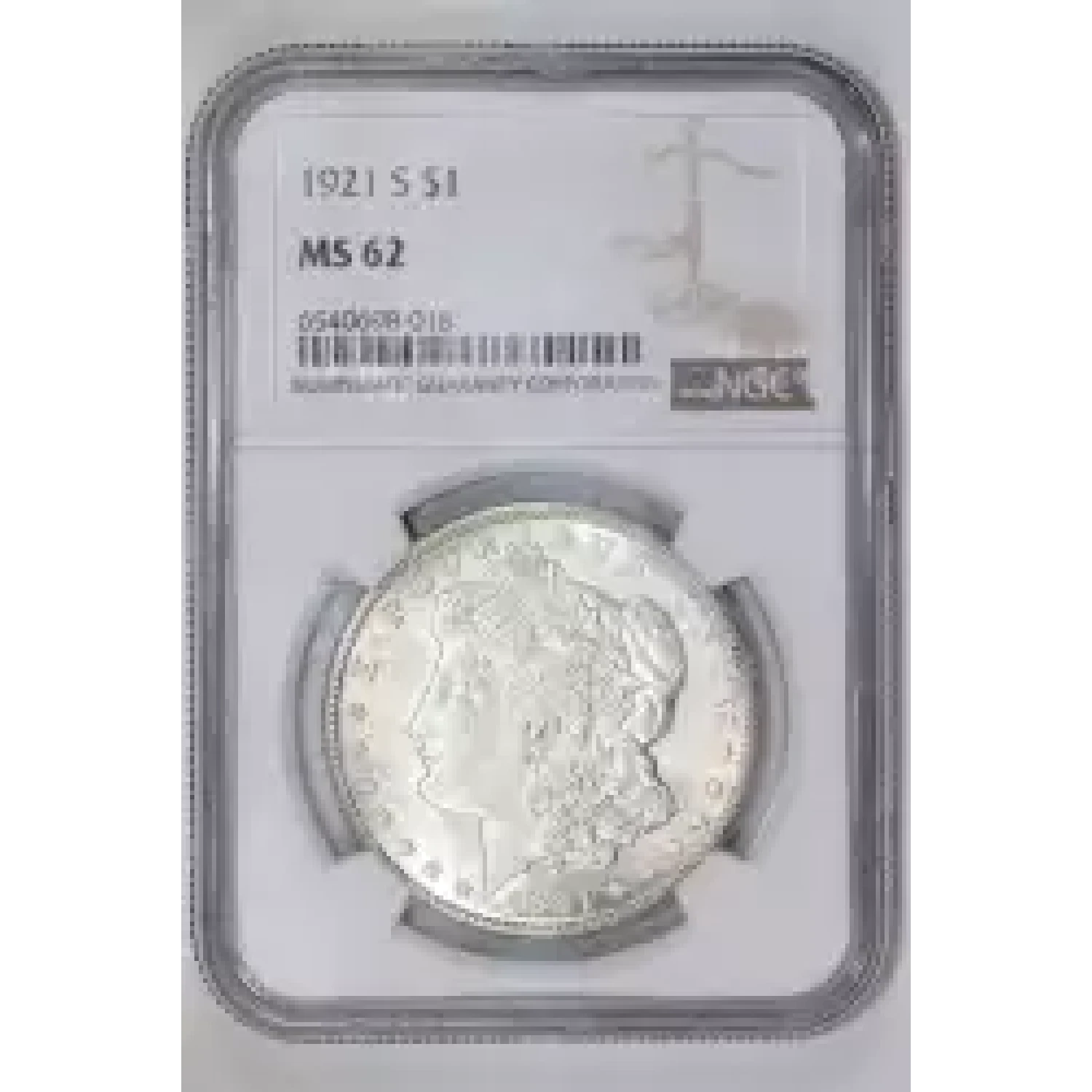 518013 | 1921-S Morgan Silver Dollar NGC MS-62 | NGC | MS-62 | Sold: 05/09/2023 | $90 |