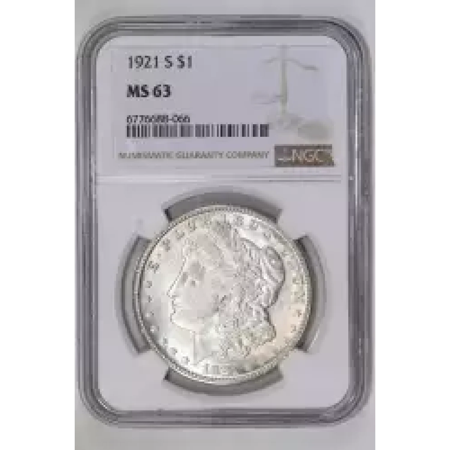518016 | 1921-S Morgan Silver Dollar NGC MS-63 | NGC | MS-63 | Sold: 08/05/2023 | $160 |