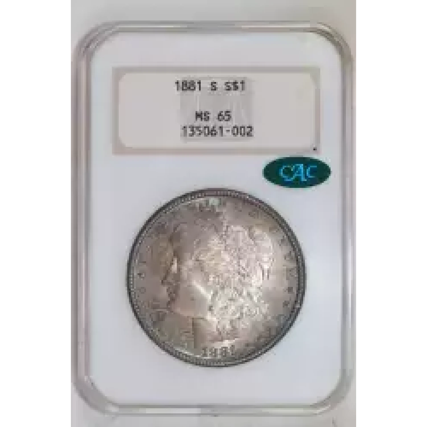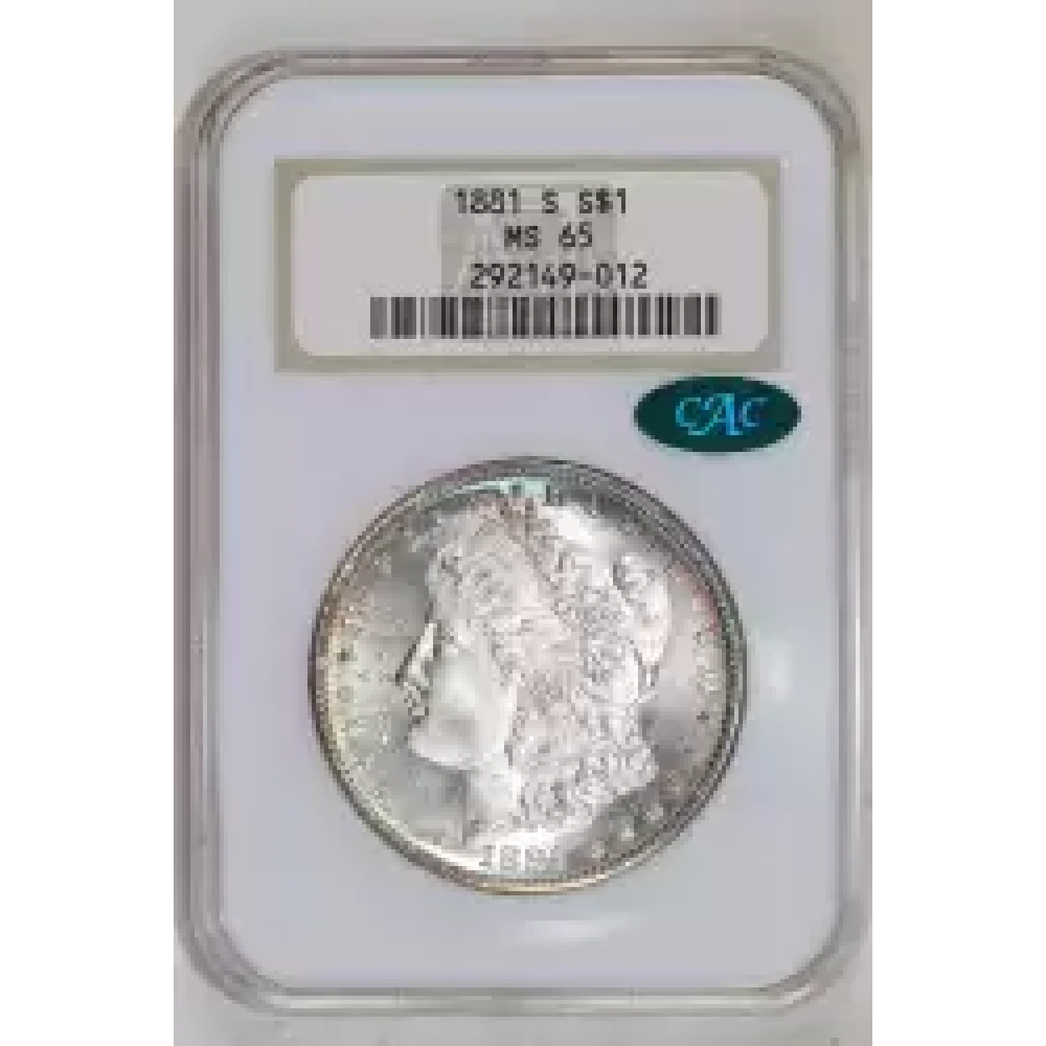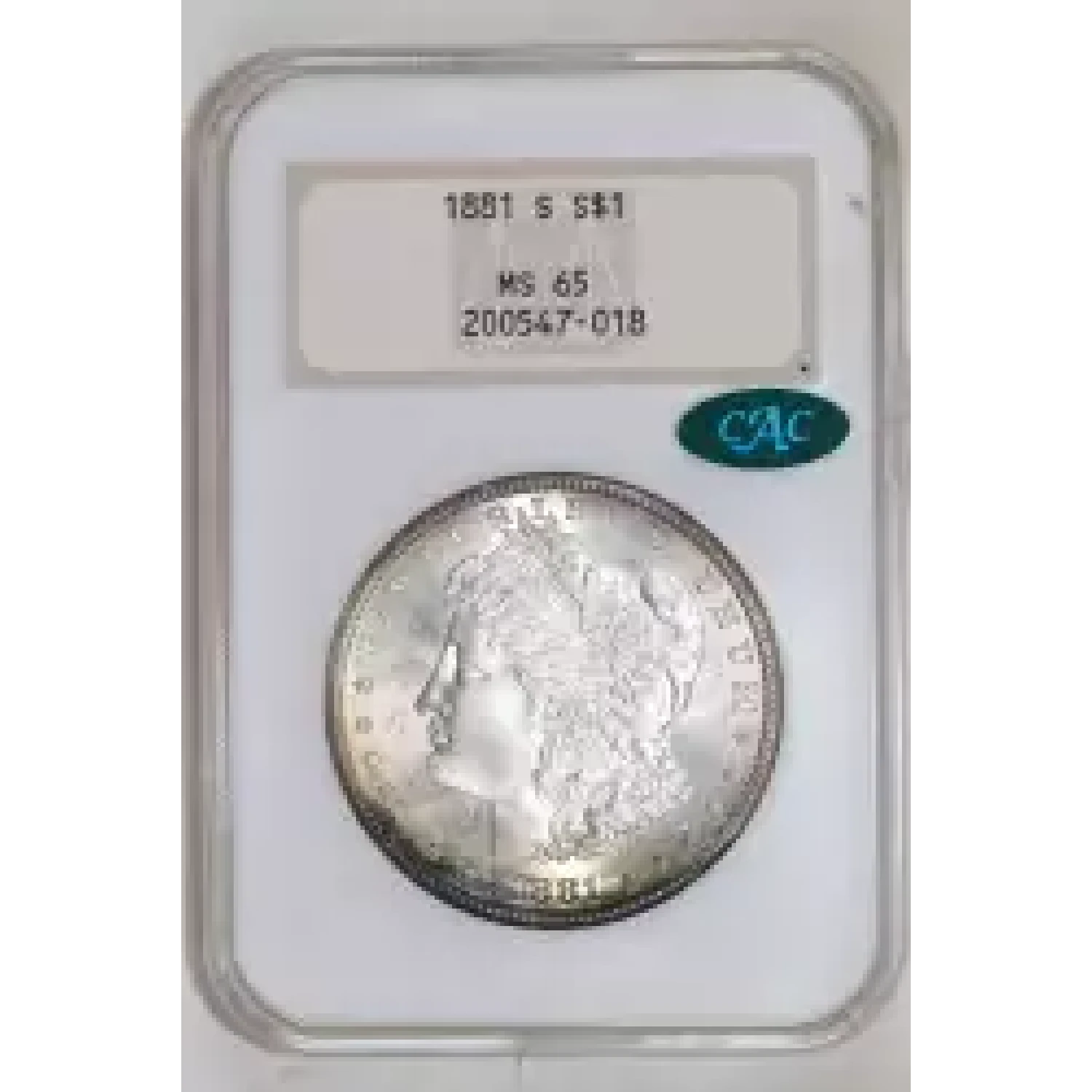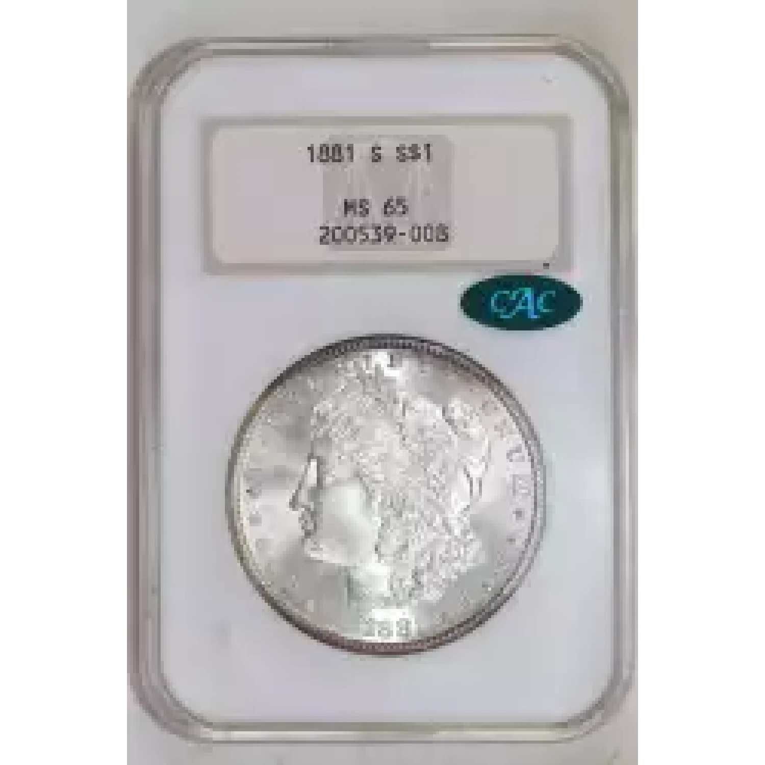520175 | 1881-S Morgan Silver Dollar NGC MS-65 CAC | NGC | MS-65 | Sold: 08/03/2024 | $325 |