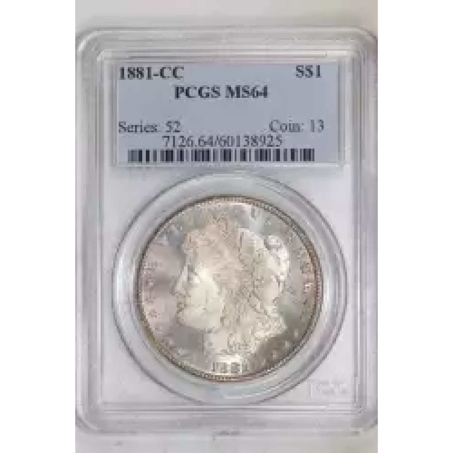 520147 | 1881-CC Morgan Silver Dollar PCGS MS-64 | PCGS | MS-64 | Sold: 17/10/2023 | $840 |