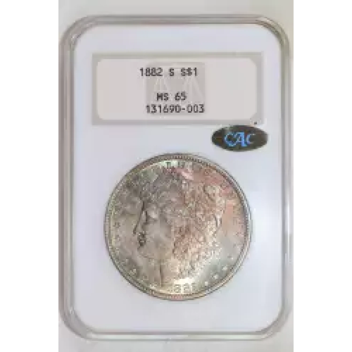 520177 | 1882-S Morgan Silver Dollar NGC MS-65 CAC Gold | NGC | MS-65 | Sold: 10/10/2023 | $1,250 |